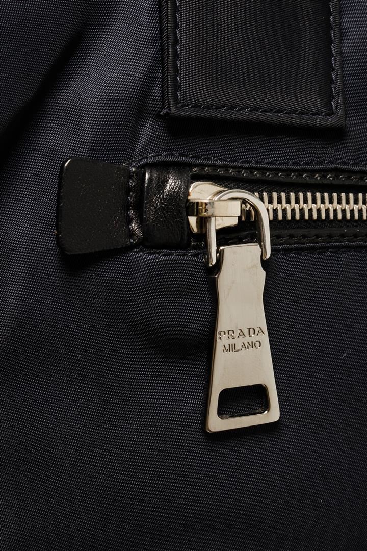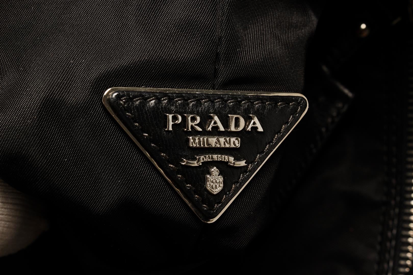 One Prada Test Double Handbag. Item is sold AS-IS. All available information is listed in the description and shown in the photo. Prada test double handbag with detachable and adjustable strap, top handles, silver-toned hardware, black nylon lining, one interior zip pocket.