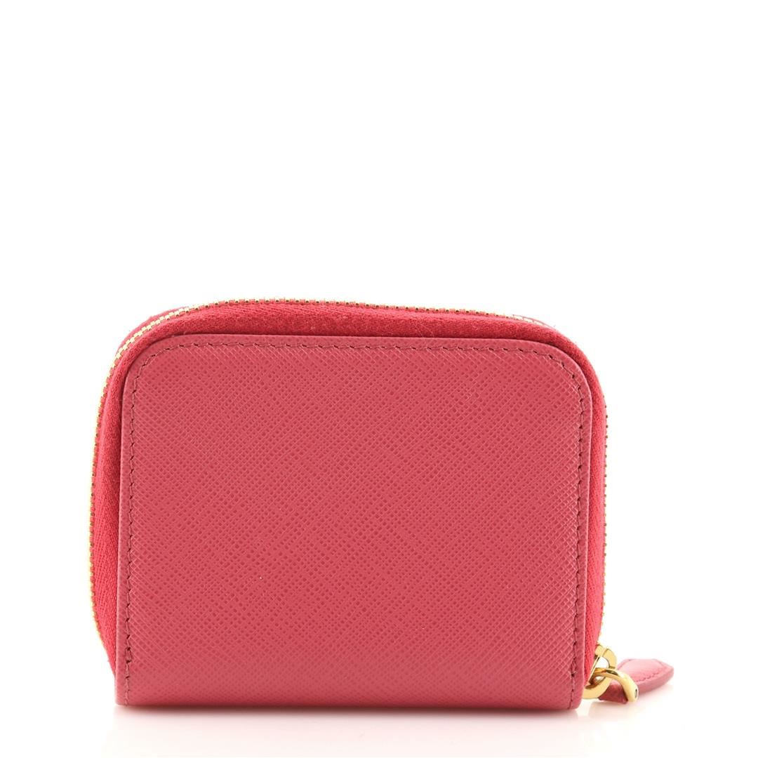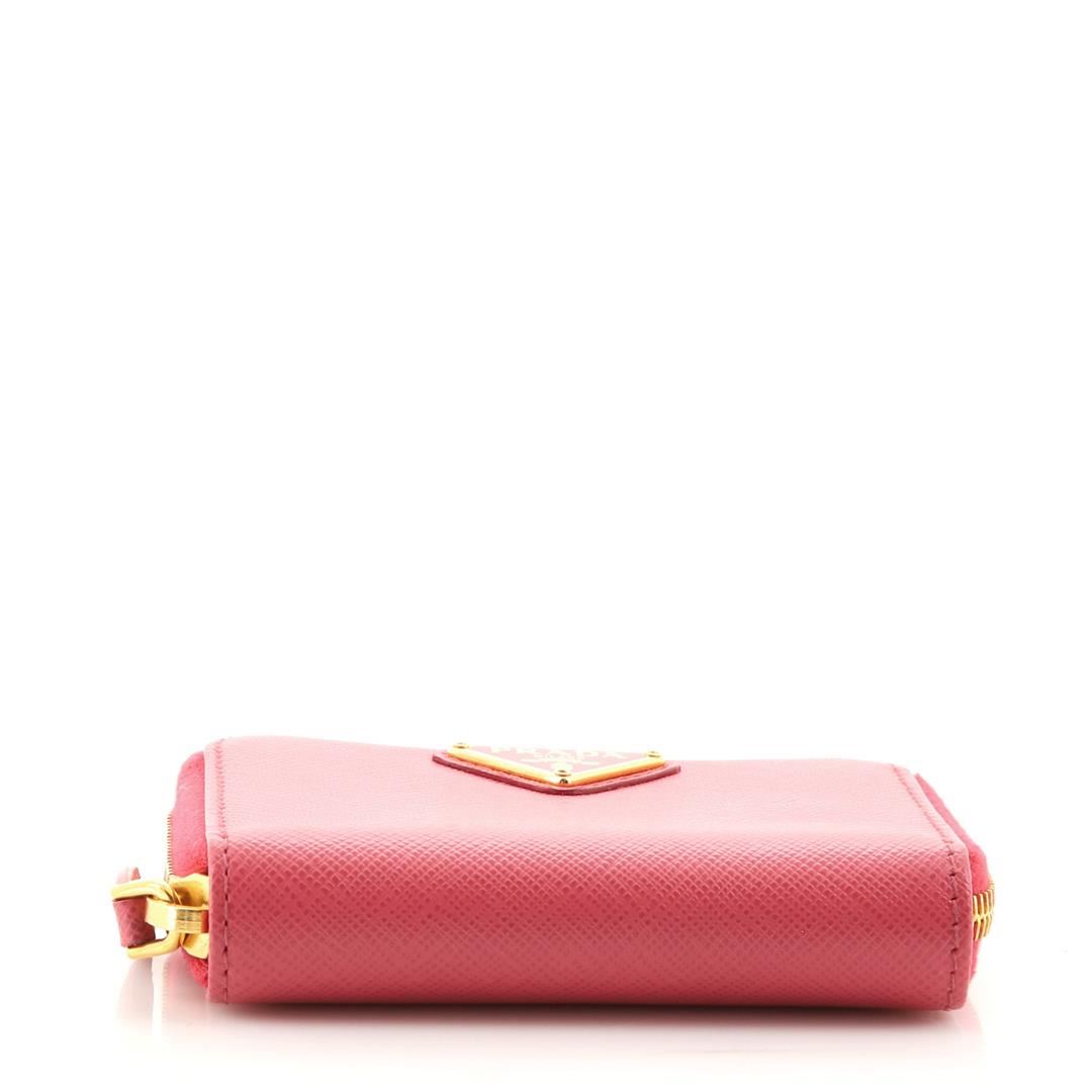 Prada Zip Around Coin Purse Saffiano Leather. Minor pilling on zipper tape, marks in interior pocket, scratches on hardware.