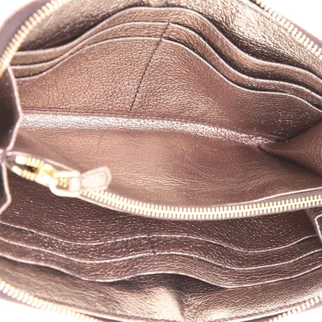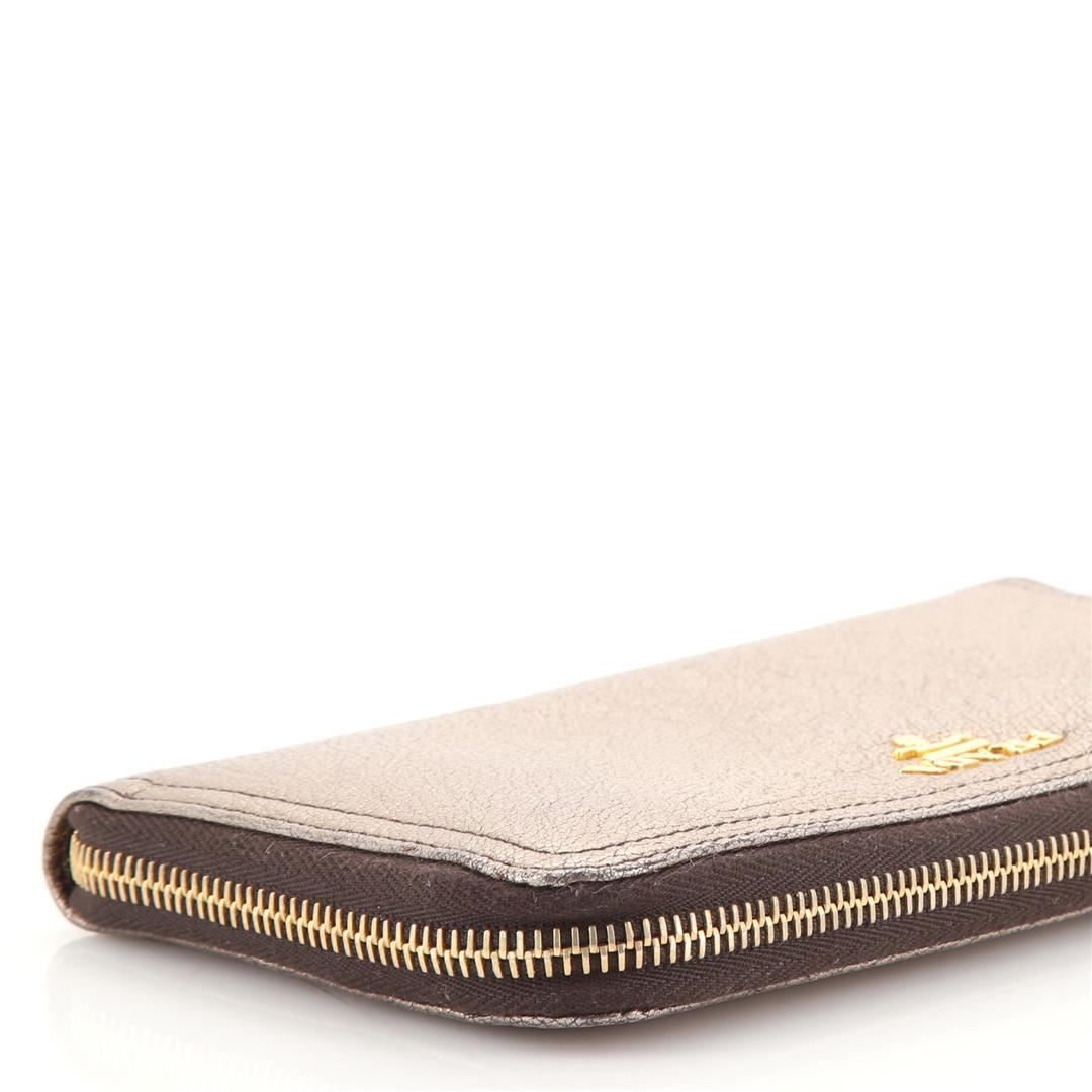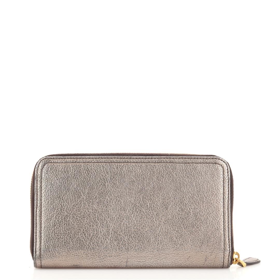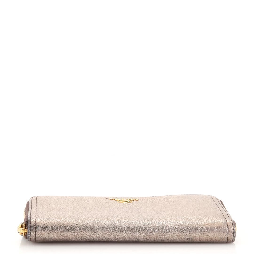 Prada Zip Around Wallet Leather Long. Odor in interior. Creasing on exterior, moderate wear and darkening on base and opening corners, pilling on zipper tape. Peeling on zipper pull wax edges, light wear in interior, scratches and discoloration on hardwar
