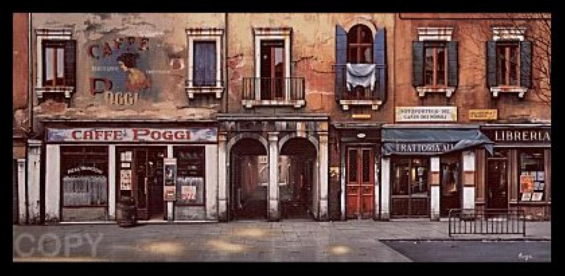 Pradzynski "Caffe Poggi" Hand Signed and Numbered Limited Edition Serigraph on Paper Dimensions: 23.5 x 50.5 Inches (Note: Edition number received may differ from photo)