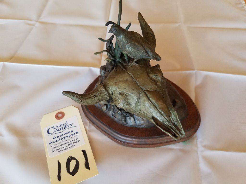 (Bronze of Buffalo Skull & Quail) - Casting #7/200 w/5 ½"h & 3"x 6"base Copyright 1984 - Pre-Auction Estimated Valuation $350-$650