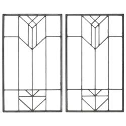 Prairie School beveled glass windows, pair, chevron design in clear glass, 16”w x 28”h, excellent condition