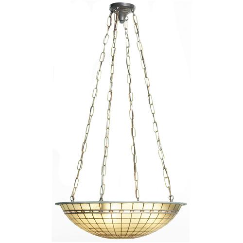 Good Prairie School hanging chandelier, leaded glass with yellow and opalescent segments,24in.w, repaired ceiling cap and chain,very nice