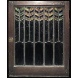Good Prairie School window, Chevron pattern in an exceptionally colorful iridescent luster above clear leaded glass, 22”w x 27”h