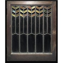 Good Prairie School window, Chevron pattern in an exceptionally colorful iridescent luster above clear leaded glass, 22”w x 27”h