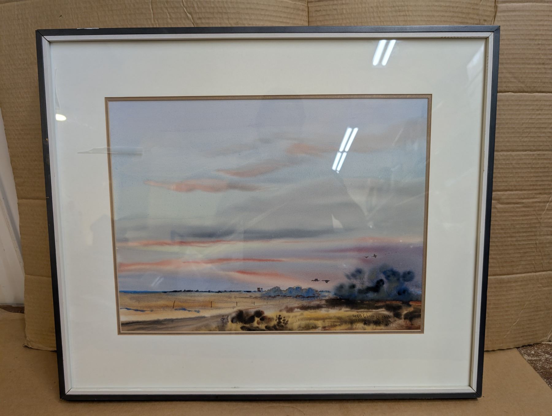 Prairie scene print by Cecil E. James, 1973. Information on renowned artist is included.