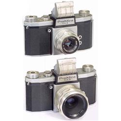 Kamera-Werkstätten, Dresden: 1) "Praktica FX 2", 1956, Trioplan 2,9/50, (3/3-). - Und: 2) "Praktica F.X 3", 1958, Tessar 2,8/50, (3/3). - € 130/170 - (126/14)
