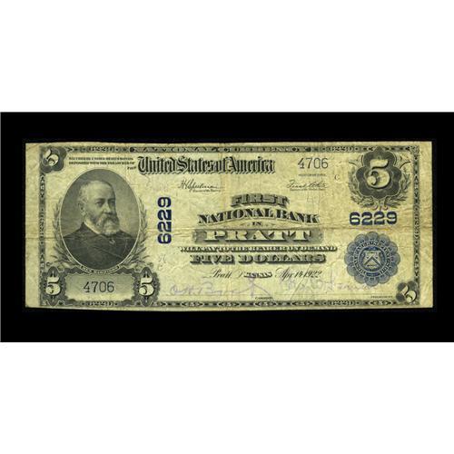 <B>Pratt, KS</B></I> - $5 1902 Plain Back Fr. 609 <B>First NB</B></I> Ch. # 6229<BR>This <B>Fine</B></I> note bears the second of two titles under which this bank issued large notes. The emergence of this note makes nine Large Size known with this title.<BR><BR><b>Shipping:</b> Coin/Currency (<a target="_blank" href="http://www.heritageauctions.com/common/shipping.php">view shipping information</a>)