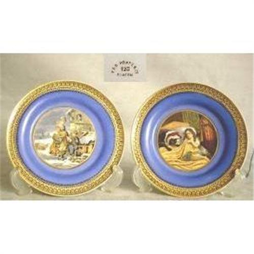 Pratt Ware Pair Of Small Plaques c1850 One Little Red Riding Hood The Other A Dutch Scene Hand Painted Scene With A Blue And Gilt Edge Border