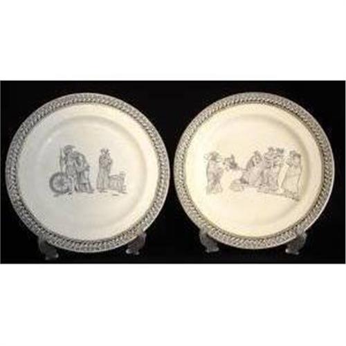 </font></strong>Pratt Ware Plaques (2) The Center of each Plaque Depicting a Roman Scene Gilt Edged c1850