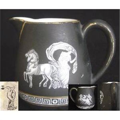 Pratt Ware Small Black Jug Decorated In The Old Greek Design <p> Slight Scratching To Glaze And Rub On Handle