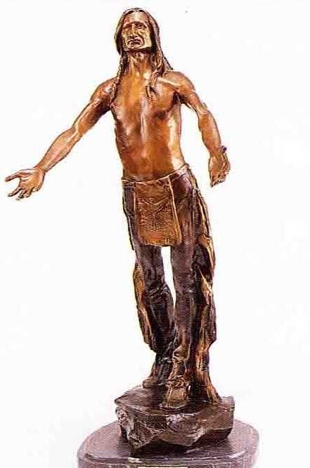 "Pray To The Great Spirit" Bronze Sculpture - After Humphries - Beautiful Patina - Mounted On A Fine Italian Marble Base - Beautifully Detailed - Signed - Mint Condition - 28"H X 11"W - Lost Wax Cast Bronze