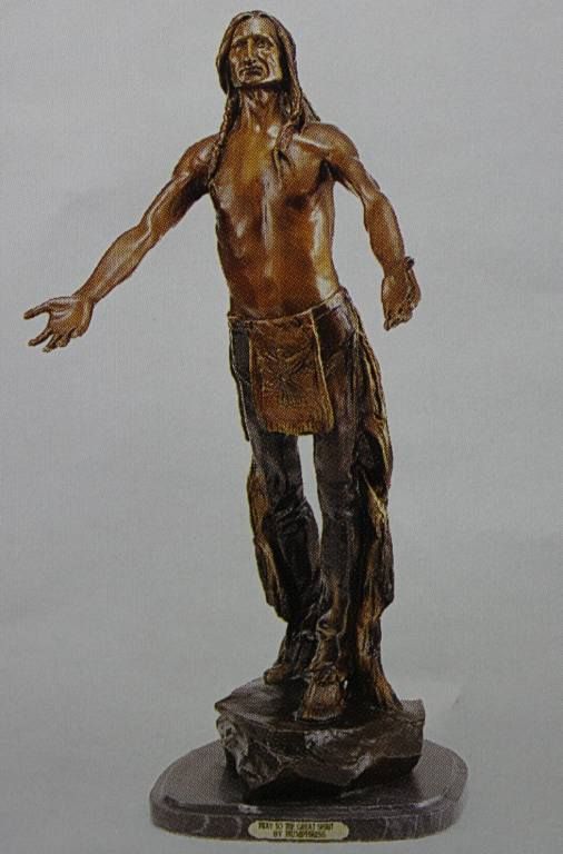 "Pray To The Great Spirit" Bronze Sculpture - After Humphries - Beautiful Patina - Mounted On A Fine Italian Marble Base - Beautifully Detailed - Signed - Mint Condition - 28"H X 11"W - Lost Wax Cast Bronze
