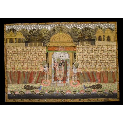 <tr><td>Title:Prayer at Tripathi Temple Indian Silk Painting</td></tr>