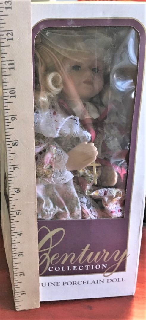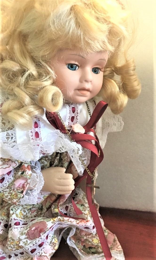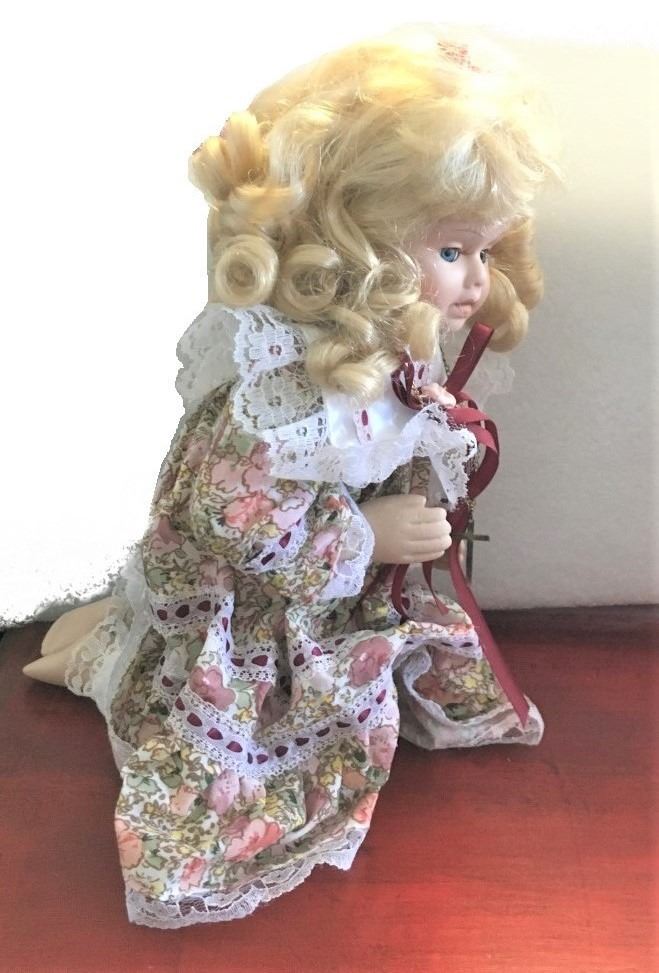 Praying Porcelain Doll with Cross - Perfect Baptism or First Communion Gift