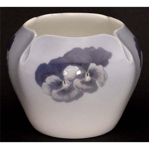 This pre 1923 Royal Copenhagen vase / small planter with pansies has a Crown and ROYAL COPENHAGEN stamp in green under the glaze and blue wave mark. It is numbered 900/423. The fact that it does not say DENMARK dates it as a pre-1923 antique. We also know that it is antique because it has a painter's number to the right of the blue waves (rather than painter's initials which were used post 1928). If you compare this vase to similar vases made today, the superior craftmanship and artistry of this early piece is evident. In very good condition, as shown. Please ask questions, request photos and shipping costs before bidding.