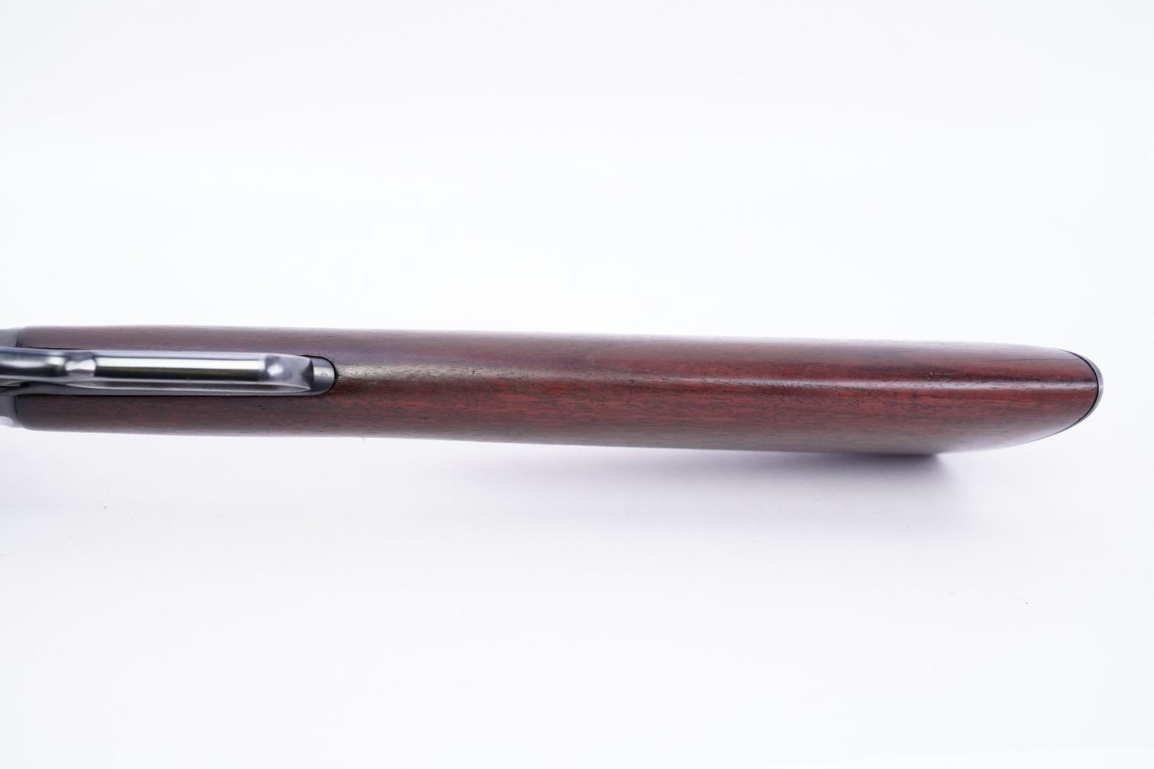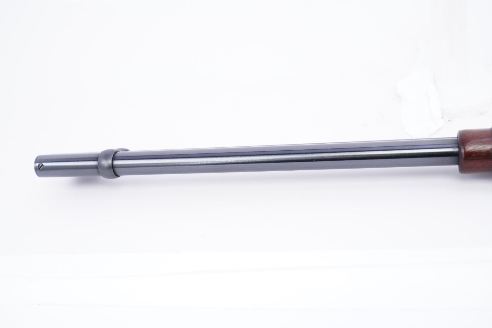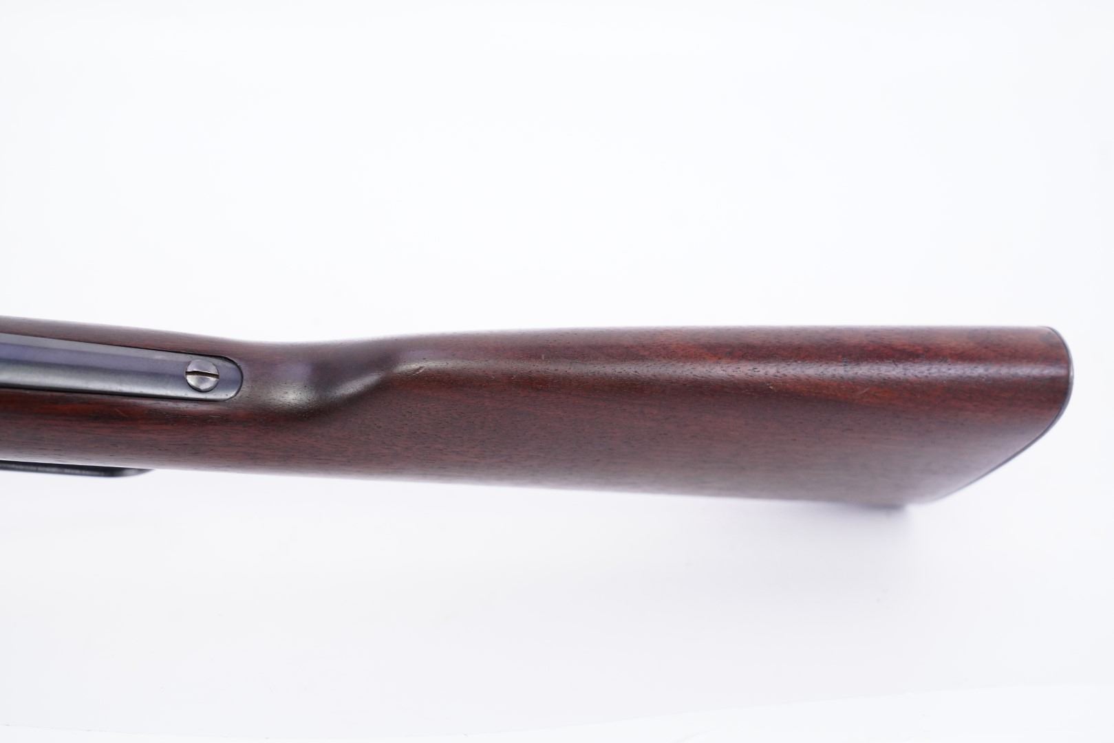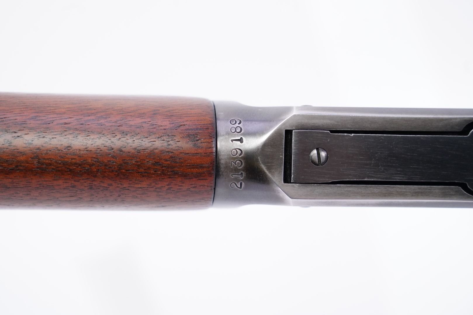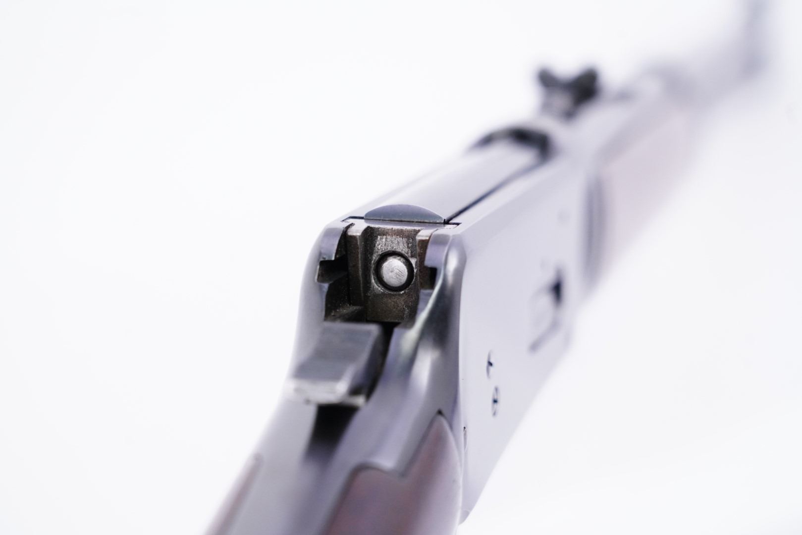 Overall Condition: This rifle retains about 96% of its metal finish. There is notable thinning on the leading edges and bottom portions of the receiver. There are some infrequently scattered light nicks and scratches throughout the surfaces. The screw heads are sharp. The markings are clear. Overall, this rifle rates in about Fine condition.