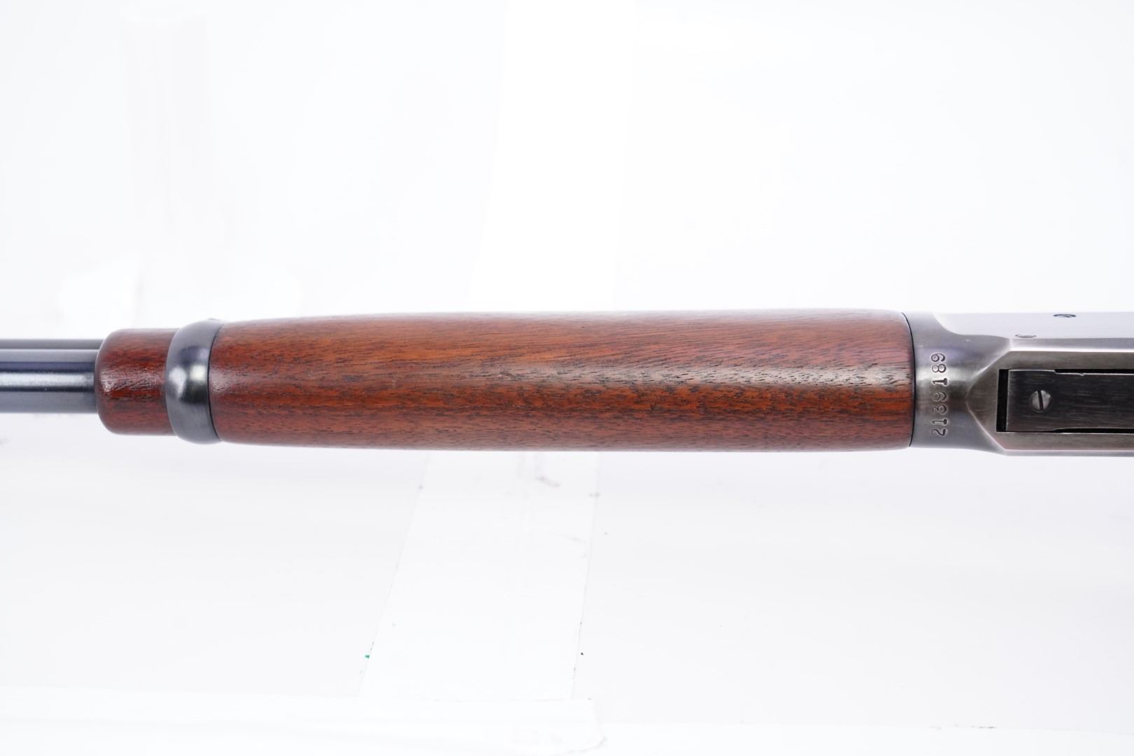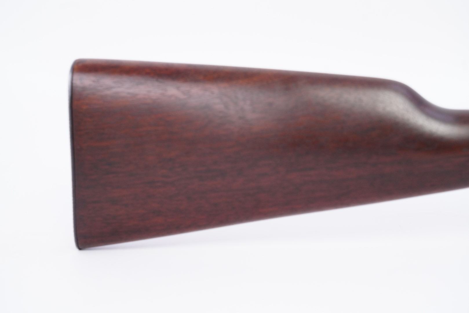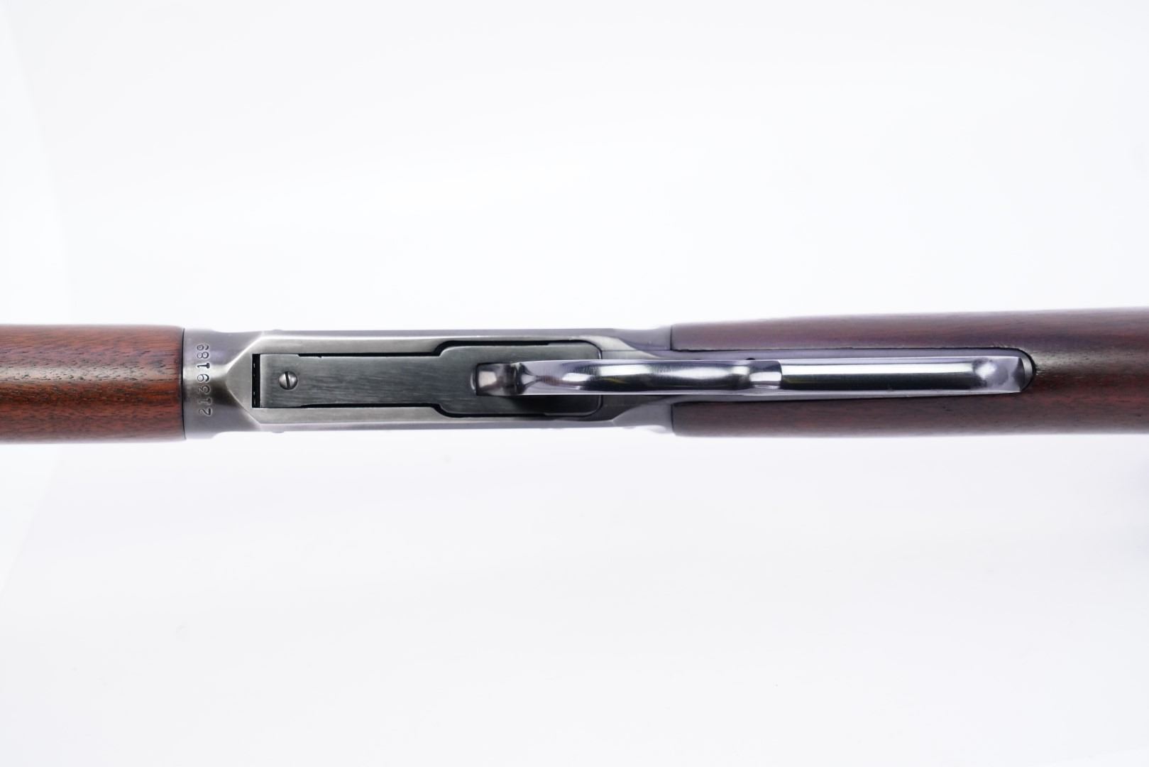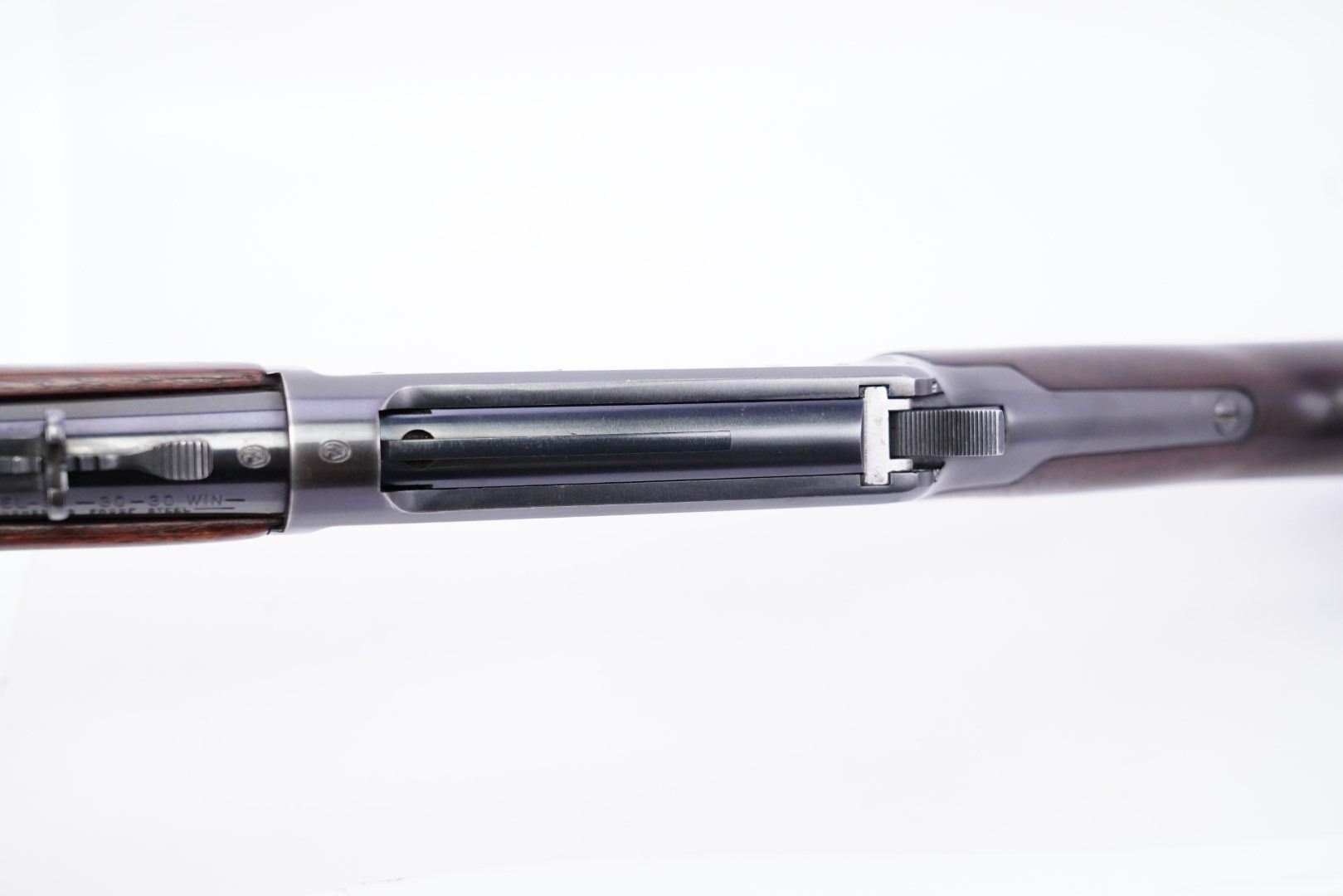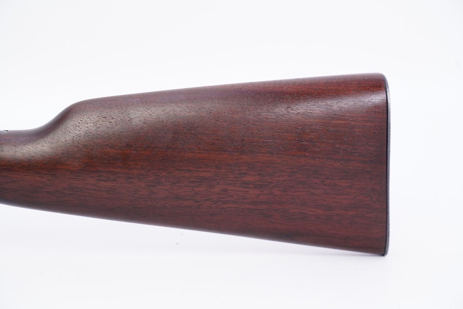 Overall Condition: This rifle retains about 96% of its metal finish. There is notable thinning on the leading edges and bottom portions of the receiver. There are some infrequently scattered light nicks and scratches throughout the surfaces. The screw heads are sharp. The markings are clear. Overall, this rifle rates in about Fine condition.