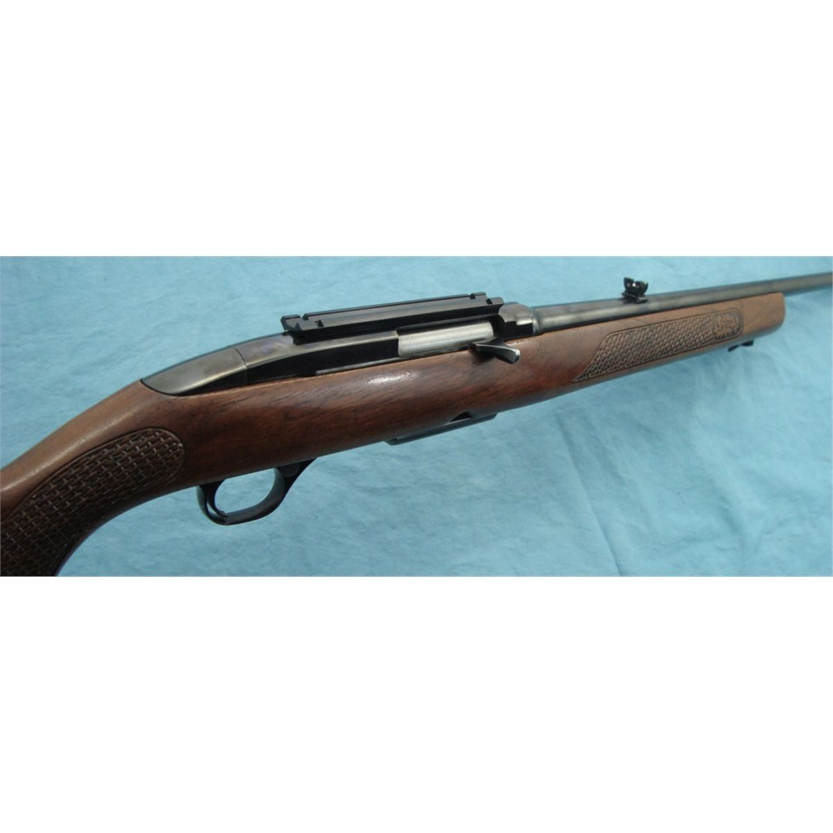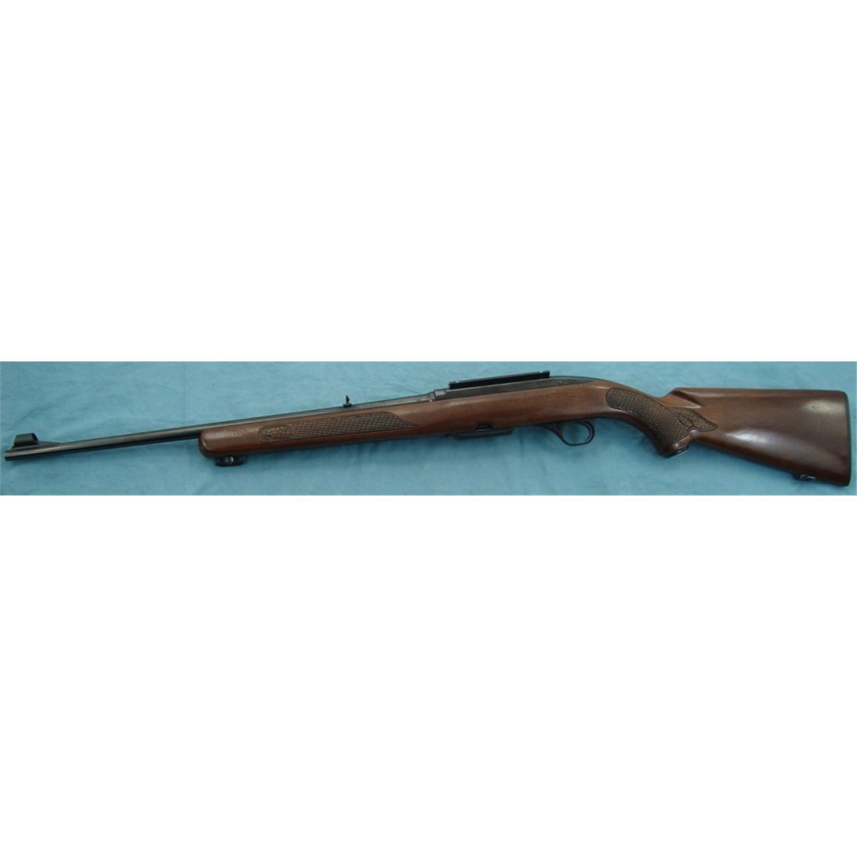 #37964; 308 cal. w/22" bbl. Good original blue & basket weave style stock. Gun is fitted w/Weaver style scope base. In very good overall condition. Mfg. in 1963.