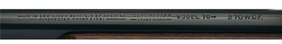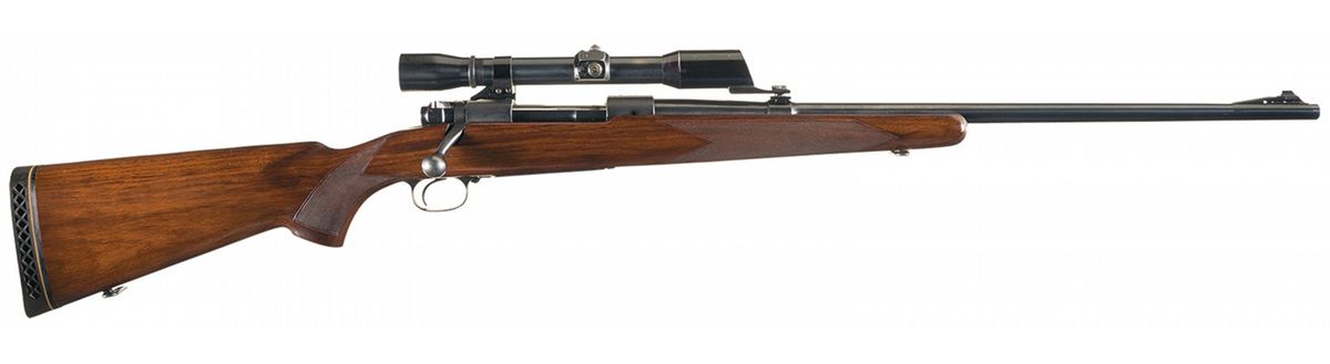 Manufactured in 1947 during the transition period (late 1945 to 1951). Ramp front sight with provisions for a hood and Weaver K4 scope with a Stith mount. Standard Winchester markings including factory proof on the barrel and receiver, transition safety, polished bolt numbered to the gun, cloverleaf receiver tang and sling swivels. Checkered pistol grip stock with vented Gil Hebard recoil pad.