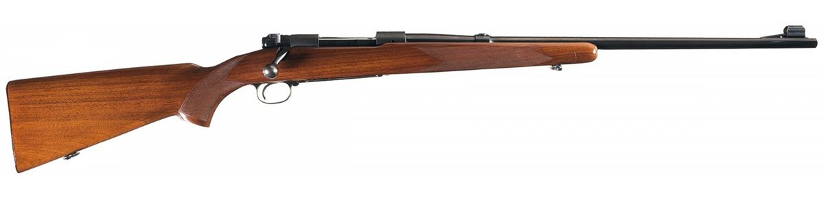 Manufactured in 1950 during the Transition period (late 1945-51). Hooded ramp front sight, filler block in the rear dovetail sight slot and receiver tapped for scope/sight mounting. Straight receiver tang, late safety, and polished bolt (numbered to a different gun, 133234; possible a factory error). The checkered straight comb pistol grip stock has sling swivels and a checkered steel buttplate.