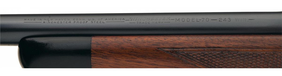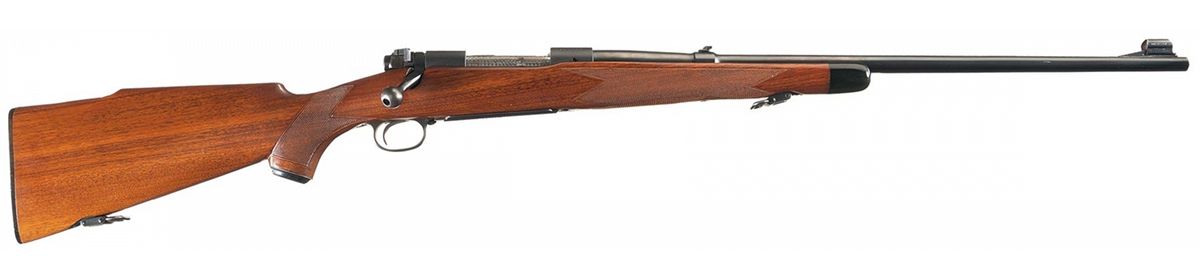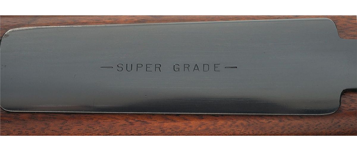 Manufactured in 1958. Hooded ramp front sight and adjustable folding leaf rear sight with the receiver tapped for sight/scope mounting. Standard Winchester markings including the factory proof on the left side of the barrel and receiver at the breech and "-SUPER GRADE-" on the hinged floor plate. Late safety, straight receiver tang, jewelled bolt (numbered to gun), extractor and follower and quick release sling swivels. Mounted on a select walnut checkered and capped pistol grip stock with cheekpiece, and checkered plastic buttplate.