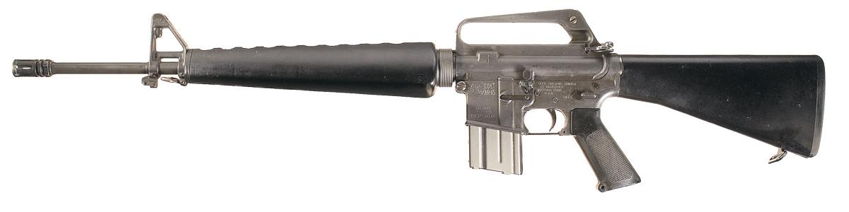 Manufactured from 1964 to 1985. Elevation adjustable post front and windage adjustable flip leaf rear sights, with birdcage flash hider, bayonet lug, vented triangular handguard, A1 style upper receiver, standard markings, checkered pistol grip and buttplate with storage compartment.