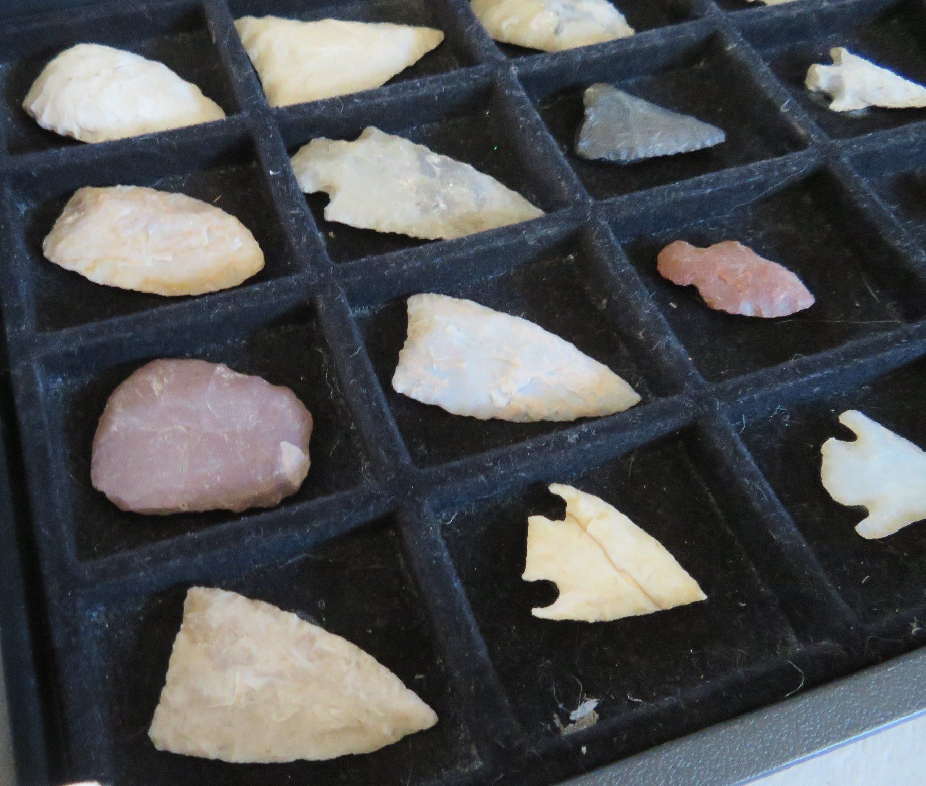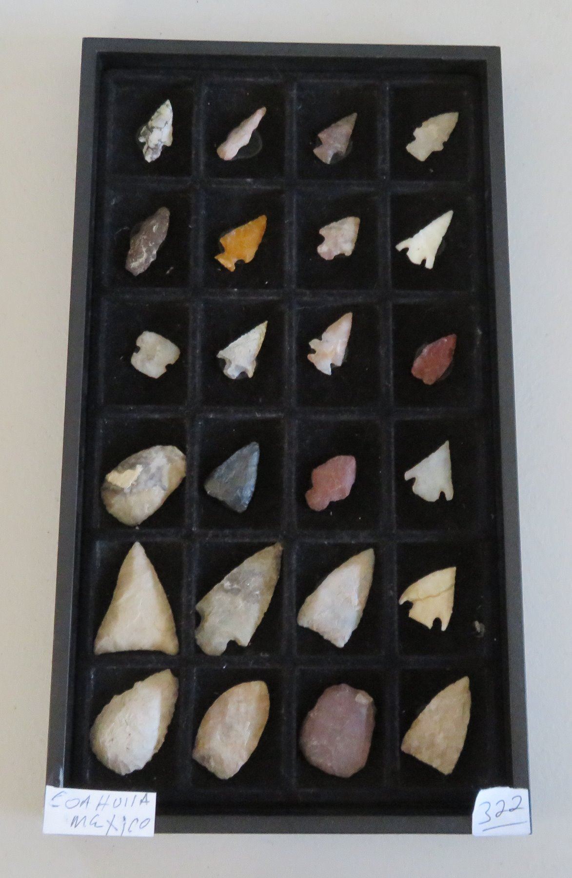 Pre-Columbian Artifact Collection, pre-Columbian items. Made of quartz, flint and chert, the longest item measures 2 3/4". Coahuila, Mexico. Nice variety of artifacts. Frame is included. Condition: As found, see images. Shipping: $32.50 w/insurance and signature, due to size and value.