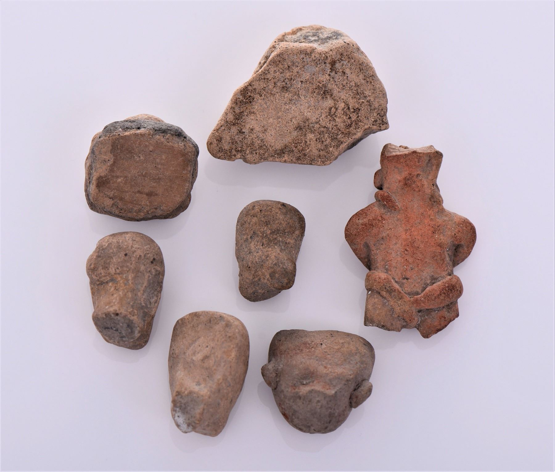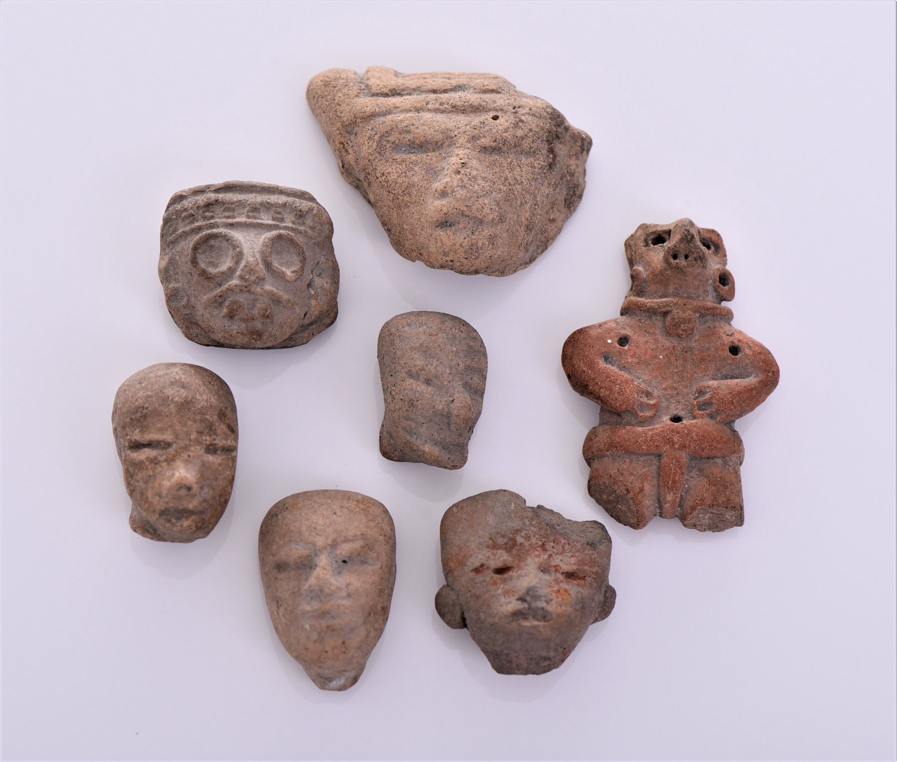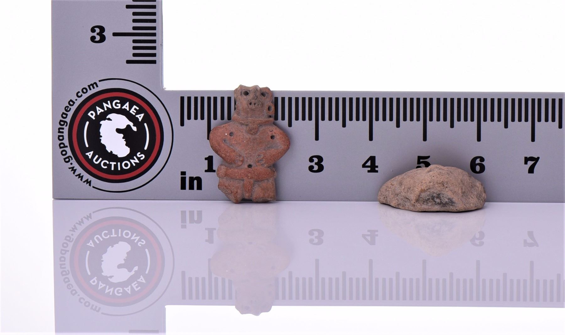 Pre-Columbian Artifact Fragments. Moisture Tested As Authentic. Provenance: Ethnographic Tribal Museum Collection (See Auction Catalog Description). Some Lots Have Been On Exhibition And Have A Custom Made Metal Stand Specifically Designed To Fit The Work. Estimated more than 500 yrs. old. Pre-Columbian era incorporates all period subdivisions in the history and prehistory of the Americas before the appearance of significant European influences on the American continents. Many pre-Columbian civilizations established hallmarks which included permanent settlements, cities, agriculture, civic and monumental architecture, major earthworks, and complex societal hierarchies. Pre-Columbian art refers to the visual arts of indigenous peoples of the Caribbean, North, Central, and South Americas until the late 15th and early 16th centuries, and the time period marked by Christopher Columbus' arrival in the Americas. Pre-Columbian art thrived throughout the Americas from at least 13,000 BCE to the European conquests. Many Pre-Columbian cultures did not have writing systems, so visual art expressed cosmologies, world views, religion, and philosophy of these cultures. During the period before and after European exploration and settlement of the Americas, indigenous native cultures produced a wide variety of visual arts, including painting on textiles, hides, rock and cave surfaces, bodies especially faces, ceramics, architectural features including interior murals, wood panels, and other available surfaces. (Wikipedia) Size and/or Weight: See Measurement Photo. (Photos Represent The Lot Condition, Pangaea Auctions)