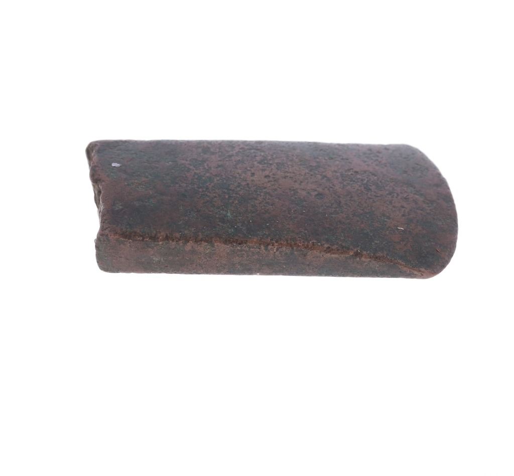 This is a Pre-Columbian, Mexico City region, Aztec (Mexica), circa 1300 to 1500 CE copper axe from the Owen D. Mort, Jr. museum collection. This is considered a beautiful example of a tepoztli, the metal component of a "tlaximaltepoztli" (in Nahuatl, tlaximal=carpentry and tepoztli=metal axe) - the classic copper alloy axe head that was mounted on a wooden haft by fitting the butt through an opening in the top of the haft. This axe head features a tapering butt with rounded end and a head that ends in a broad curve with flaring tips and beveled edge blade. Larger axes were used in battle, while ones of smaller size were used as currency / money or ceremonially. Truly a wonderful, rare war size example, commonly seen. Provenance: the Owen D. Mort, Jr. Collection. Owen David Mort was an American engineer who amassed an impressive collection throughout his worldwide travels. His collection has included art, artifacts and other historical items from which he has donated to museums at the University of Utah and Snite Museum of Art, the University of Notre Dame, including of Afghani artifacts. Measures 2 7/8”L by 1 5/8”.