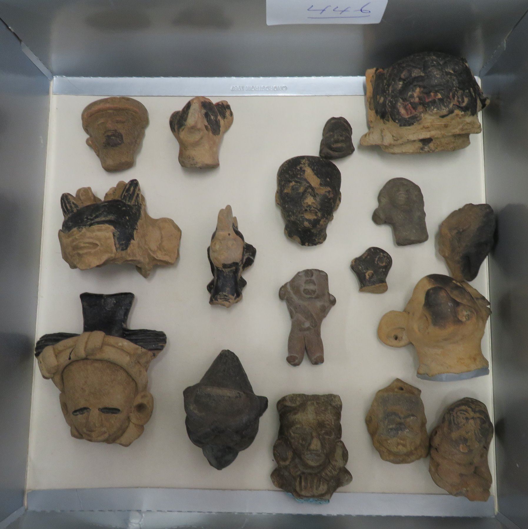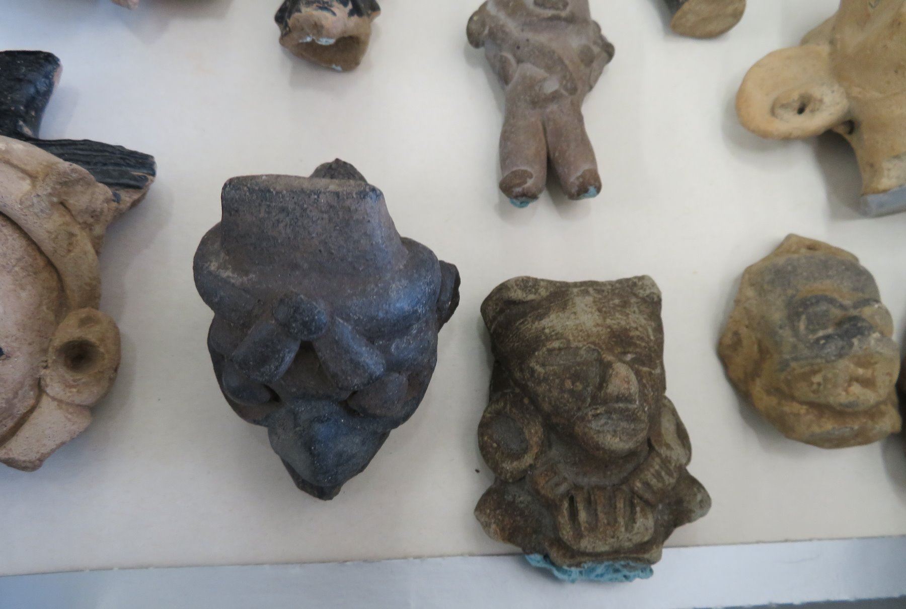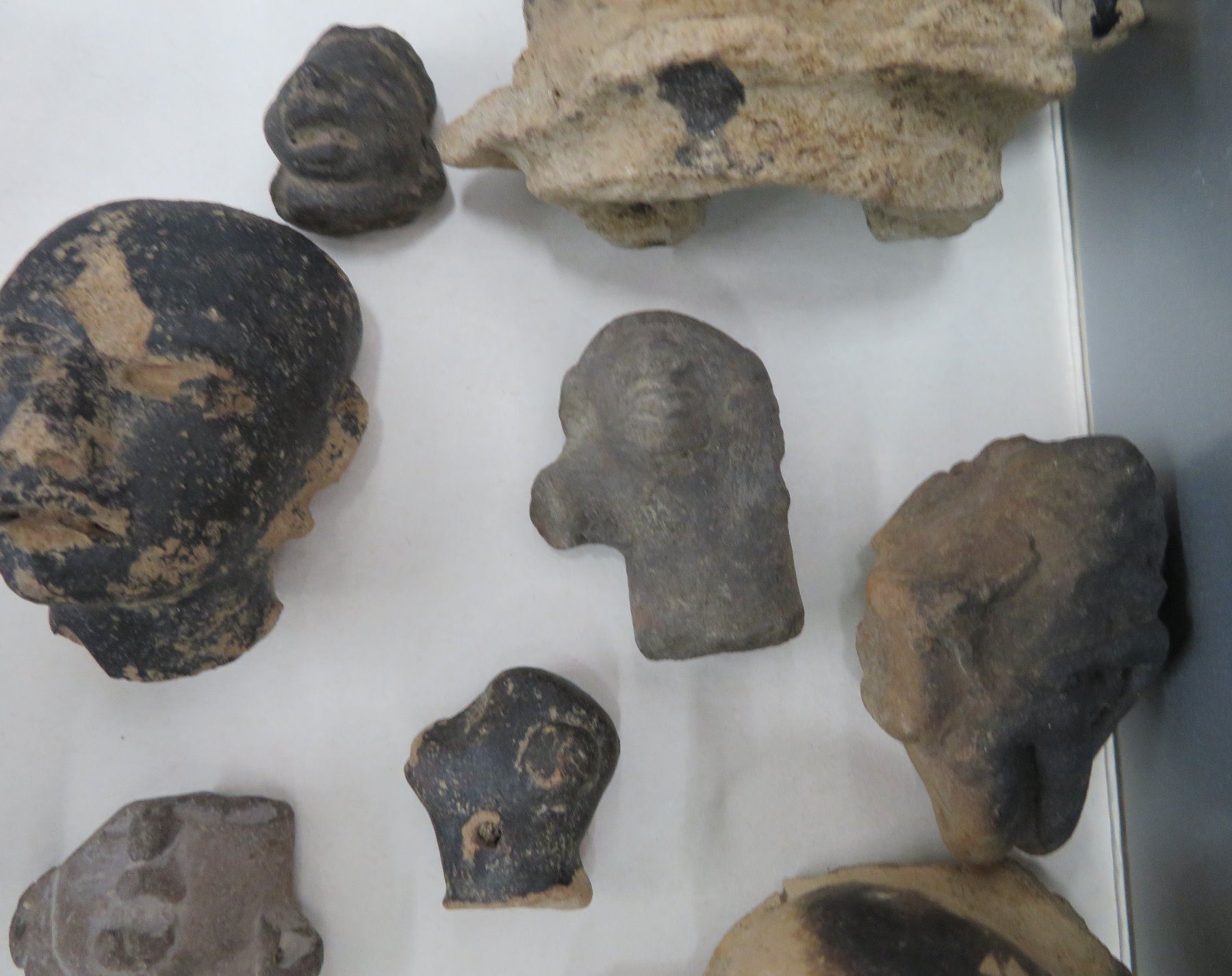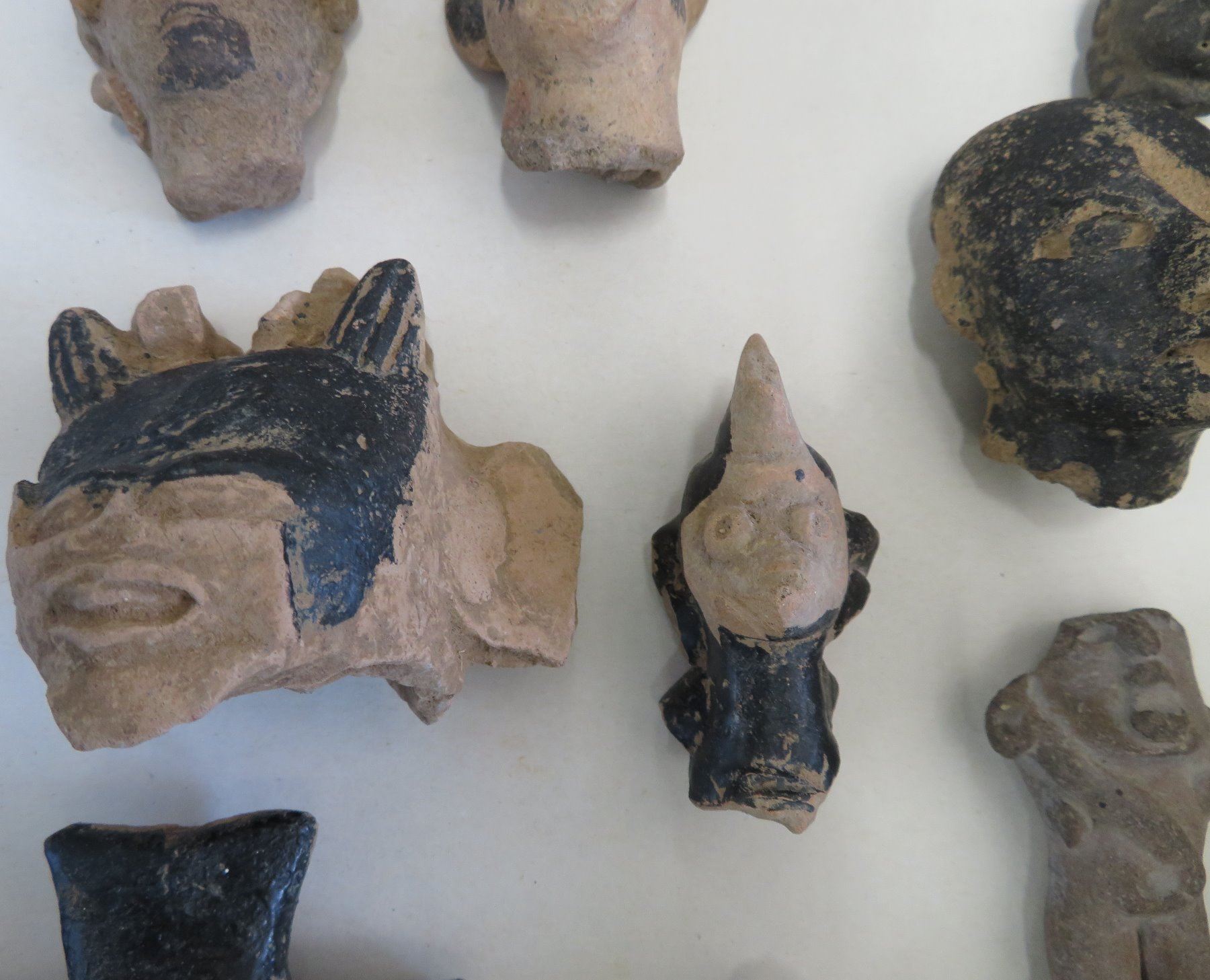 Pre-Columbian Black Head Collection, pre-Columbian items. Made of clay and bitumen, the items measure from 1/2" to 4". Veracruz, Mexico. Condition: As found, see images. Shipping: $25.50 w/insurance and signature.