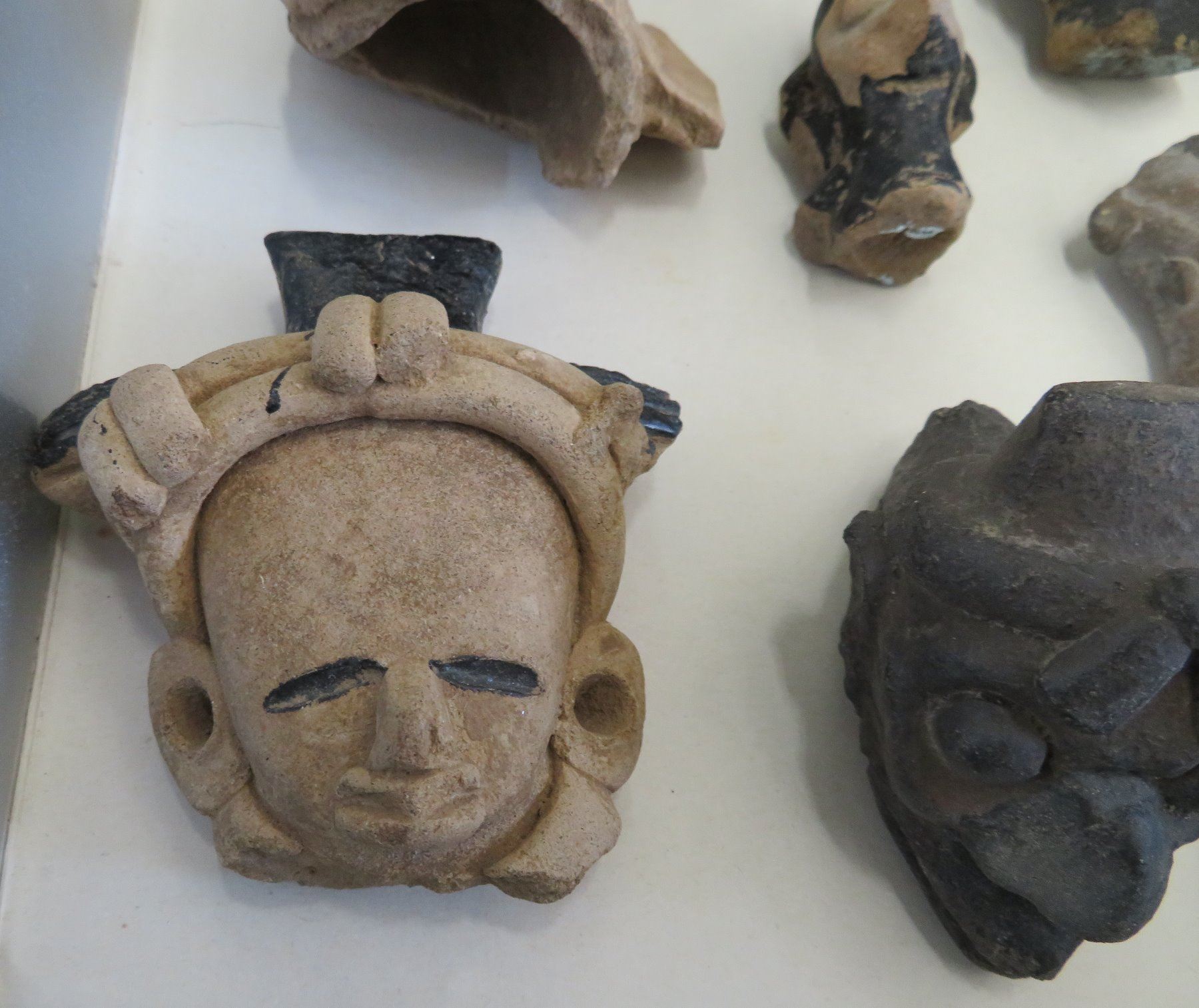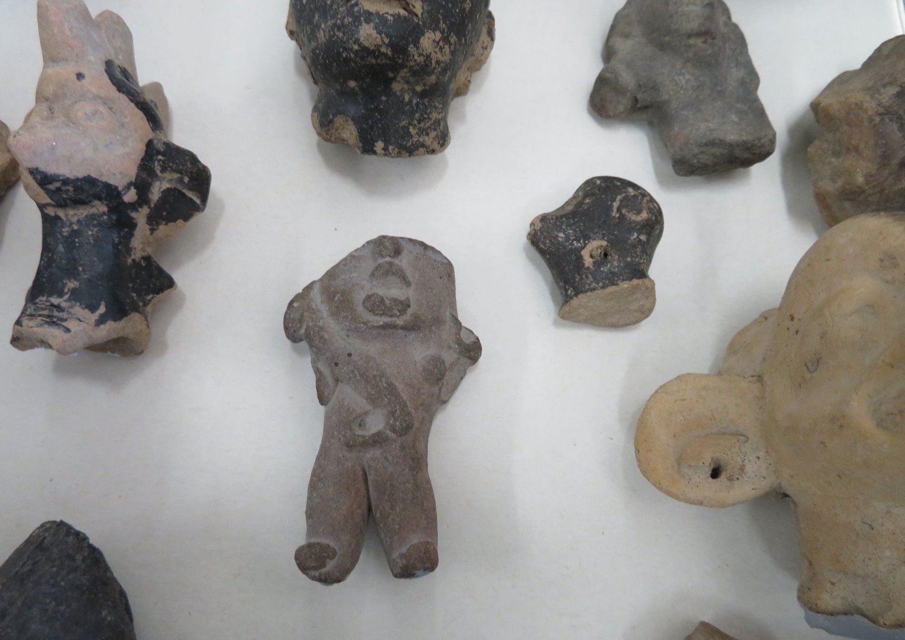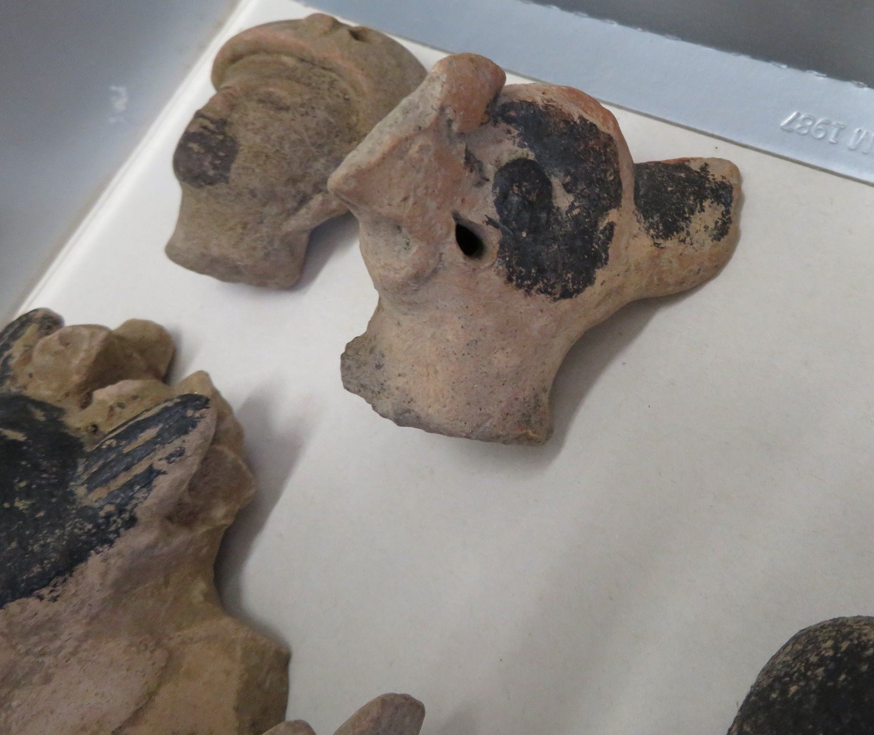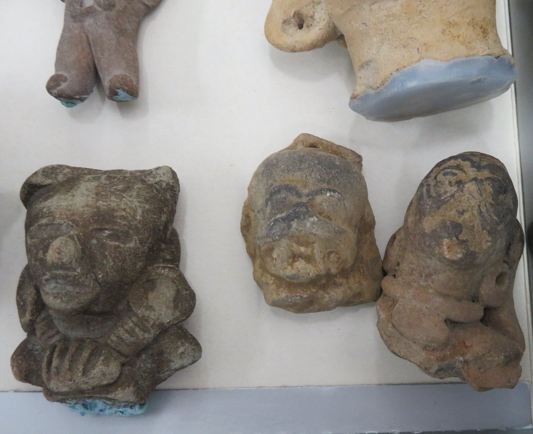 Pre-Columbian Black Head Collection, pre-Columbian items. Made of clay and bitumen, the items measure from 1/2" to 4". Veracruz, Mexico. Condition: As found, see images. Shipping: $25.50 w/insurance and signature.