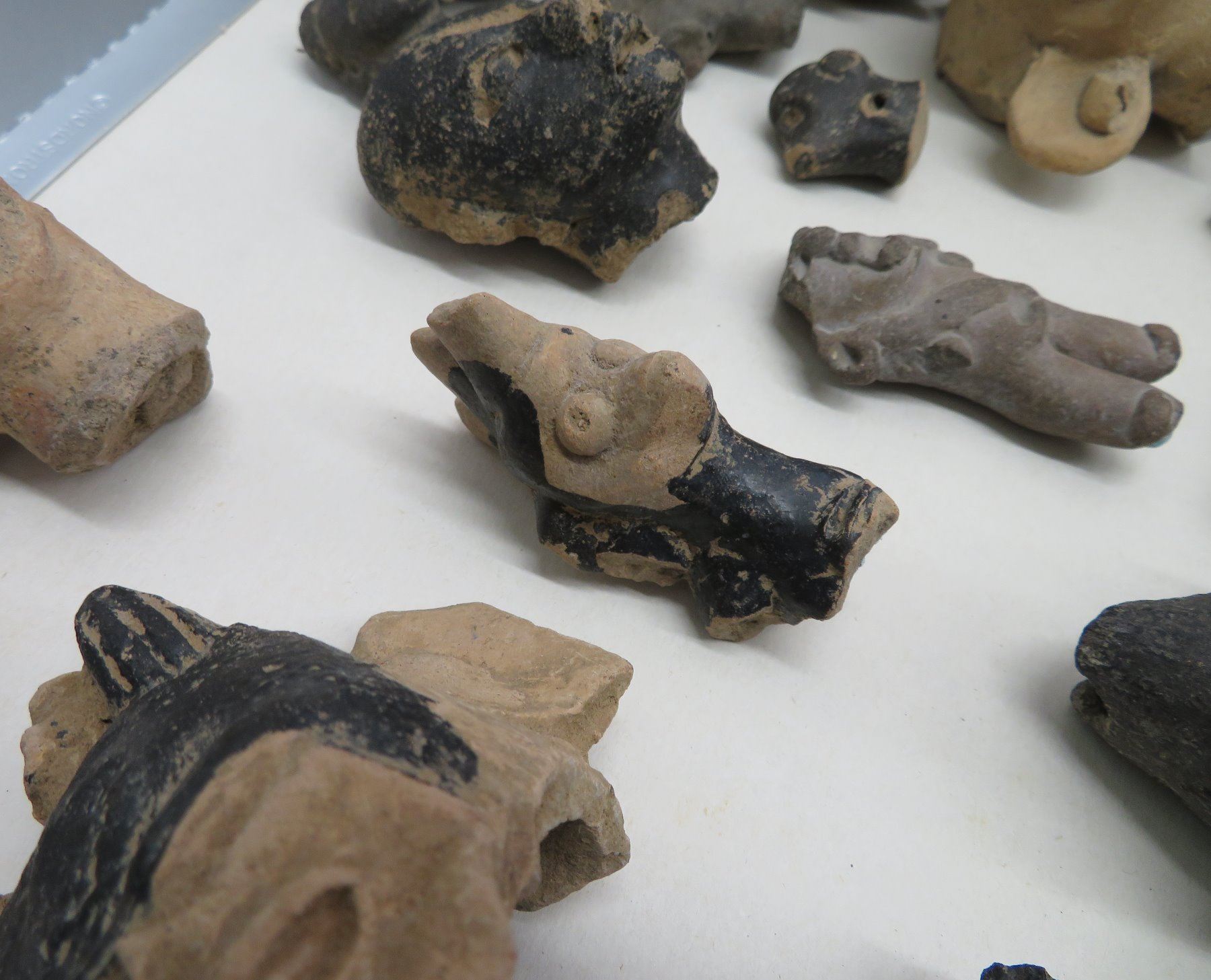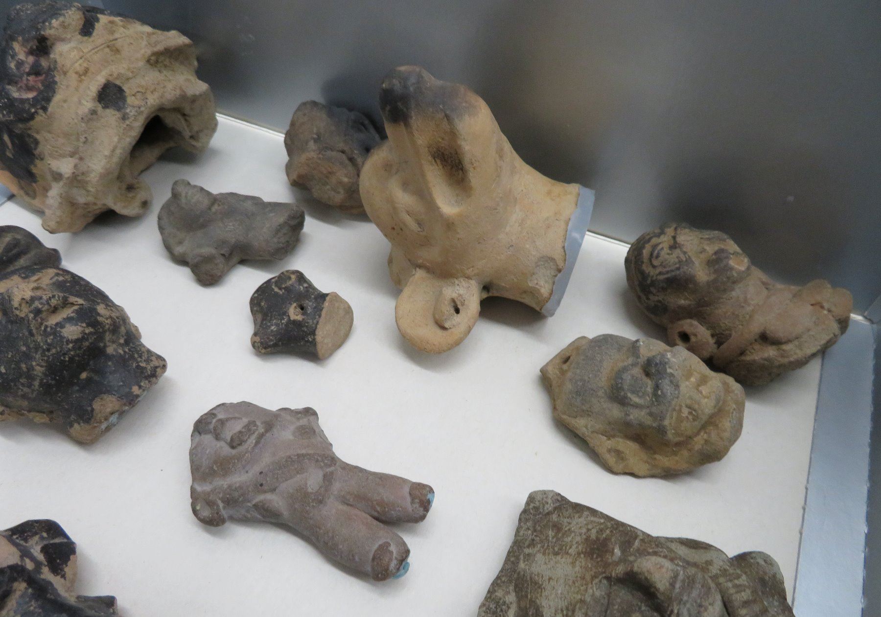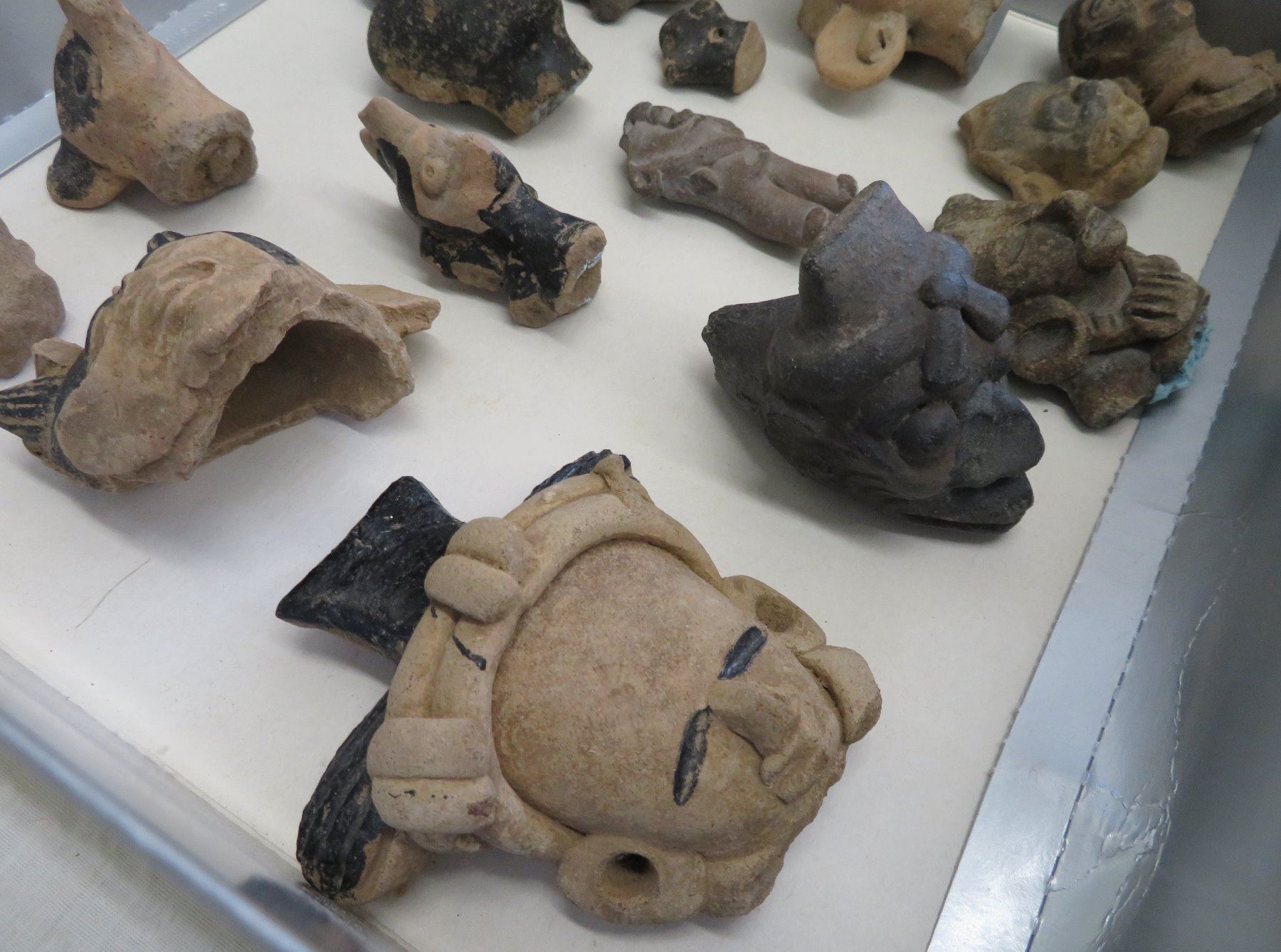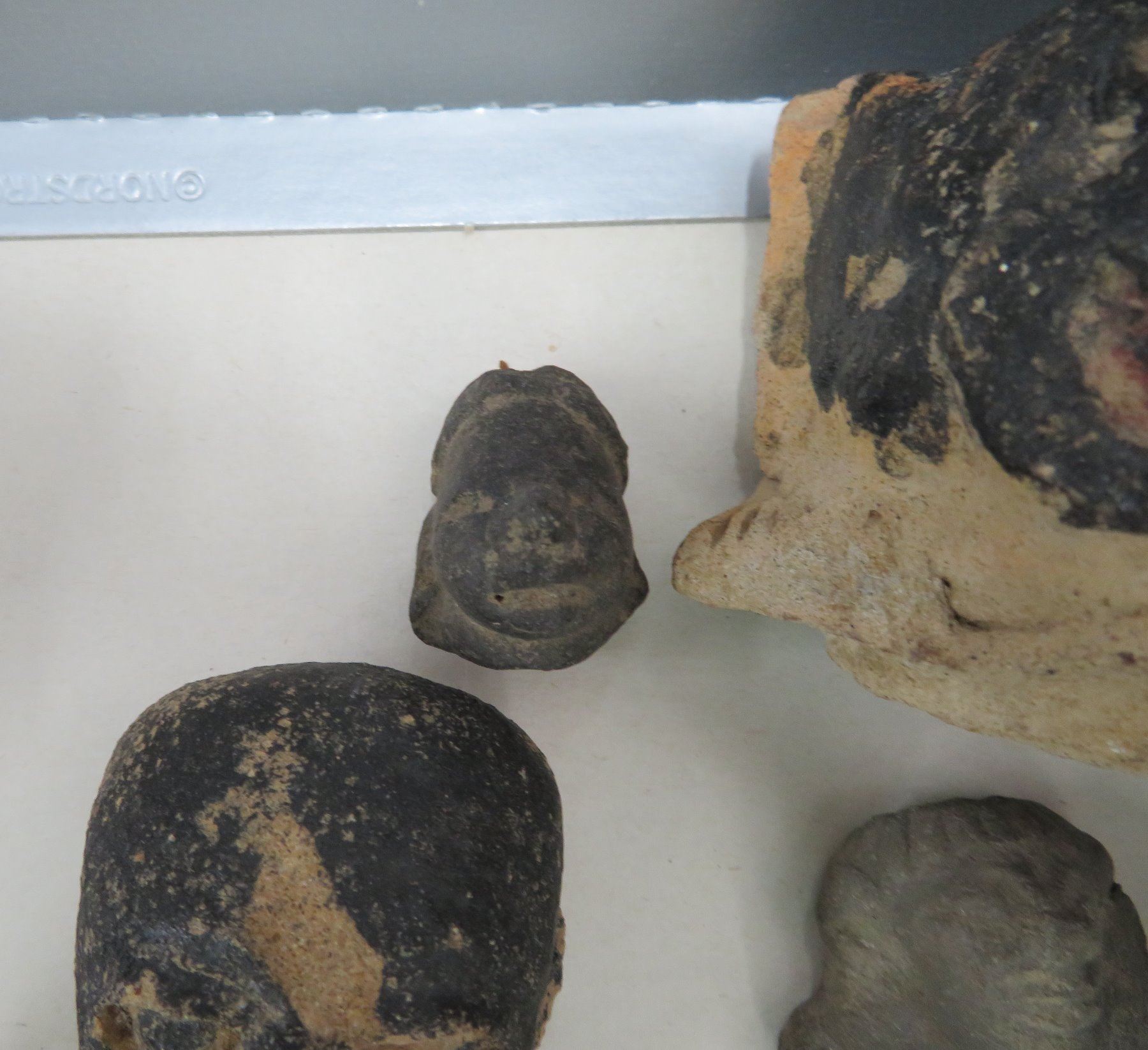 Pre-Columbian Black Head Collection, pre-Columbian items. Made of clay and bitumen, the items measure from 1/2" to 4". Veracruz, Mexico. Condition: As found, see images. Shipping: $25.50 w/insurance and signature.