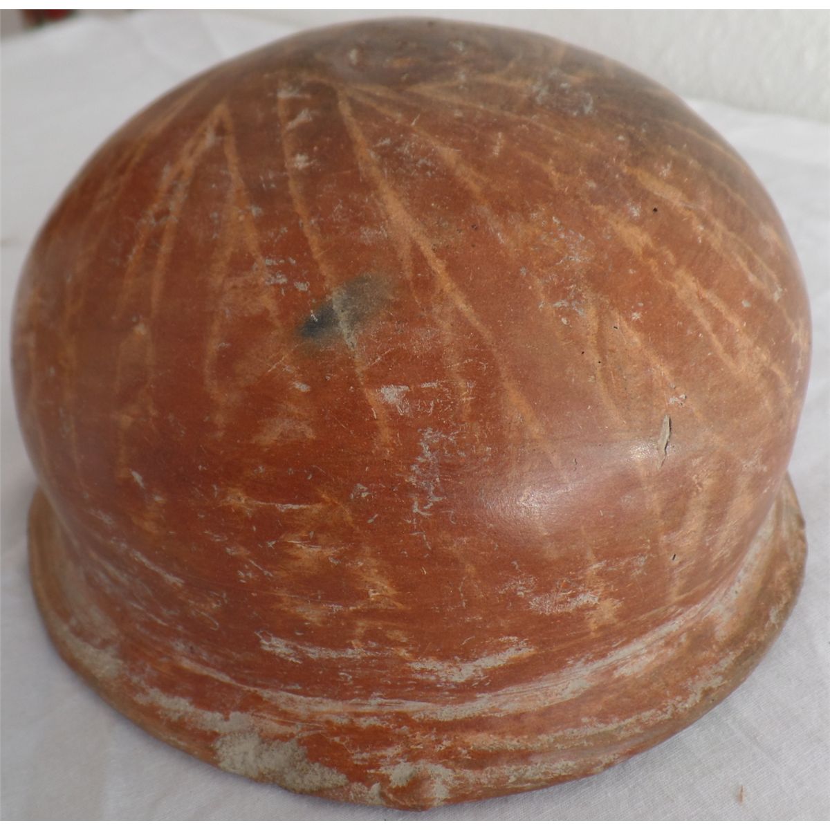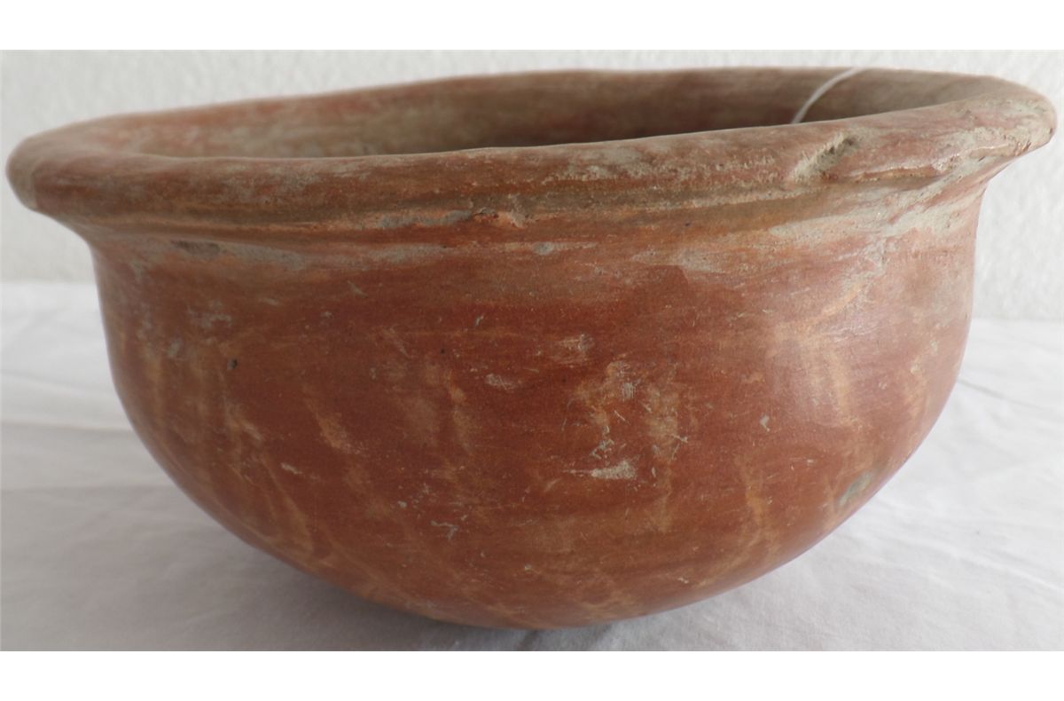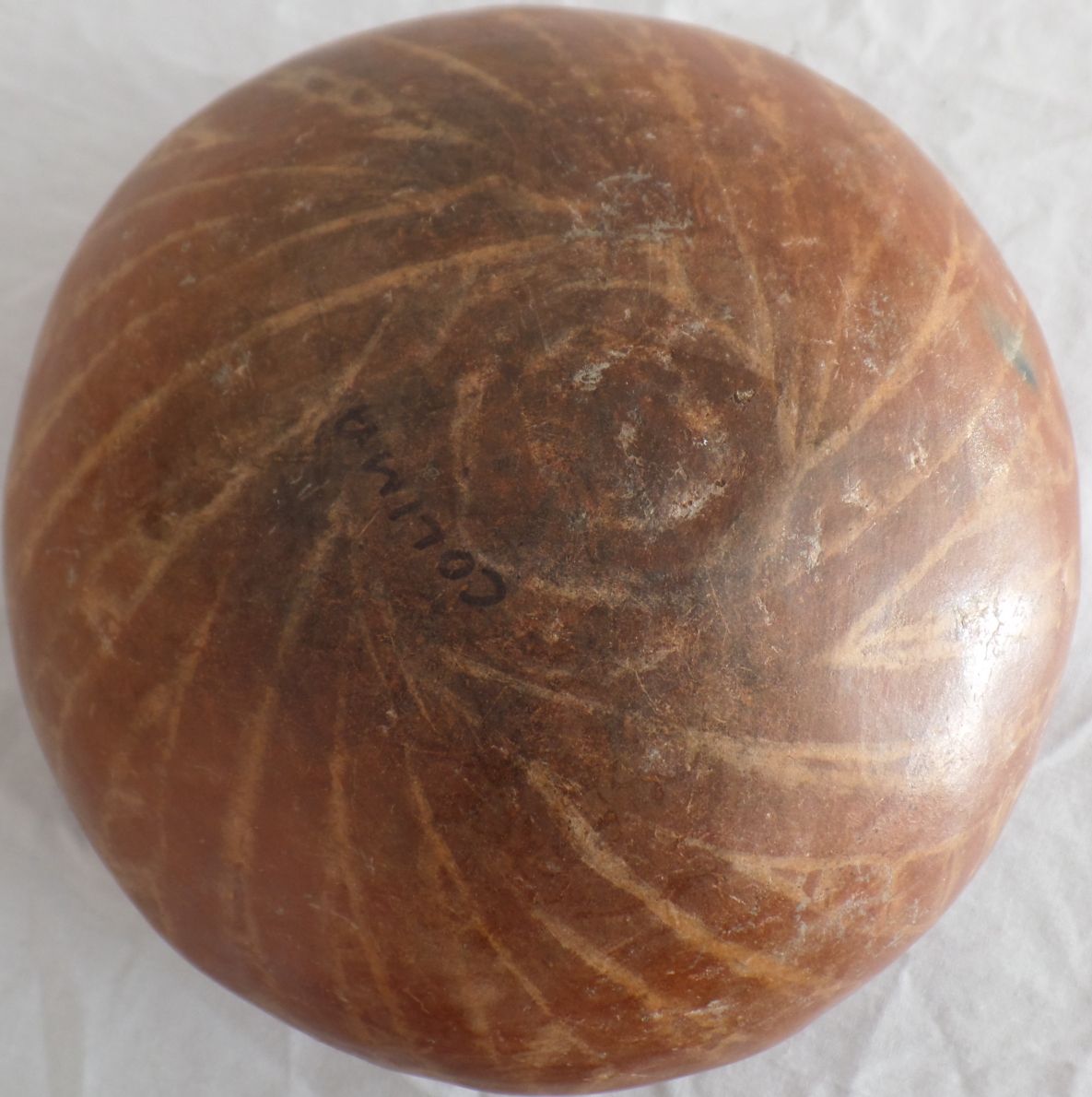 Pre-Columbian Bowl is heavily engraved and painted from Colima, Mexico, and is around 2000 years old. Item measures 7" x 4" with upper rim. Condition: Good, some scratches. Shipping: $22.