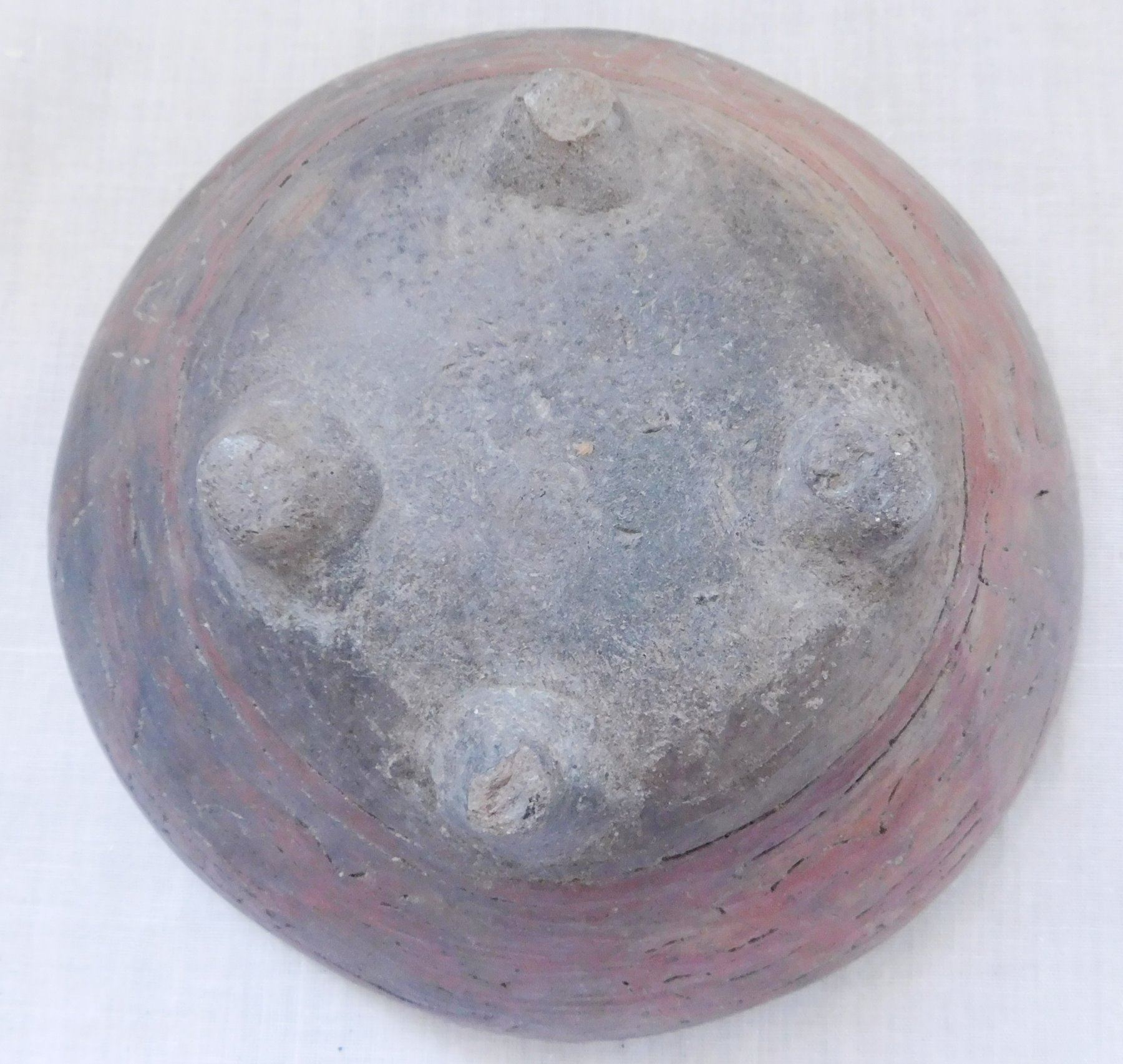 Pre-Columbian Bowl, circa 2000 years old. Made of clay and paint, the item measures 6.5" x 6.5" x 2 5/8". Nayarit, Mexico. Classic old bowl. Condition: As found, see images. Shipping: $30.00 w/insurance and signature, double-boxed.