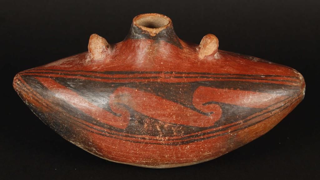 Unidentified origin- possibly Anasazi or Northern Mexico. Approx 9-1/2" long x 5" tall. With losses to paint, otherwise fine overall.