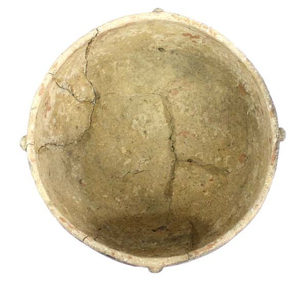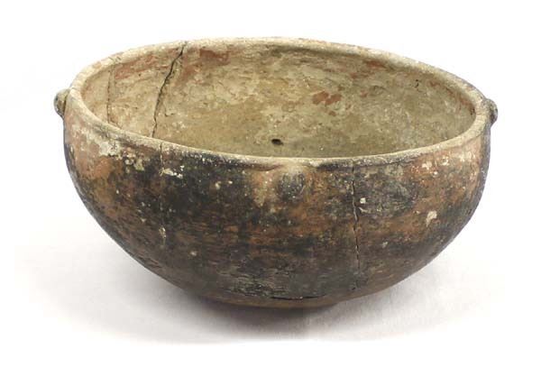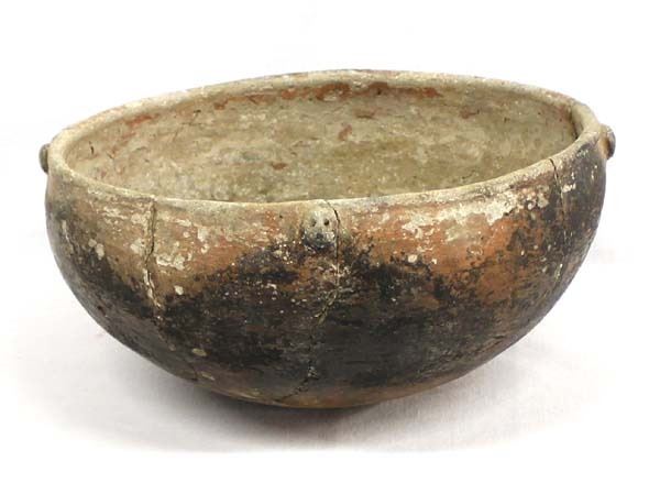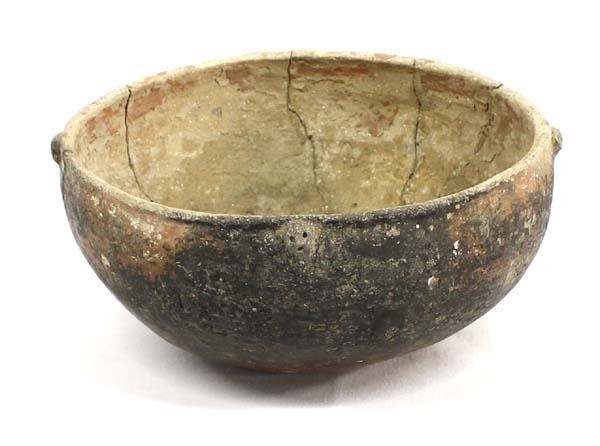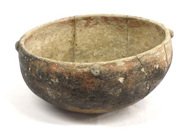 Pre Columbian Chancay Utilitarian Pottery Bowl, measures 4.5''H x 10''D, has been glued, the small knobs along the rim appear to be little faces