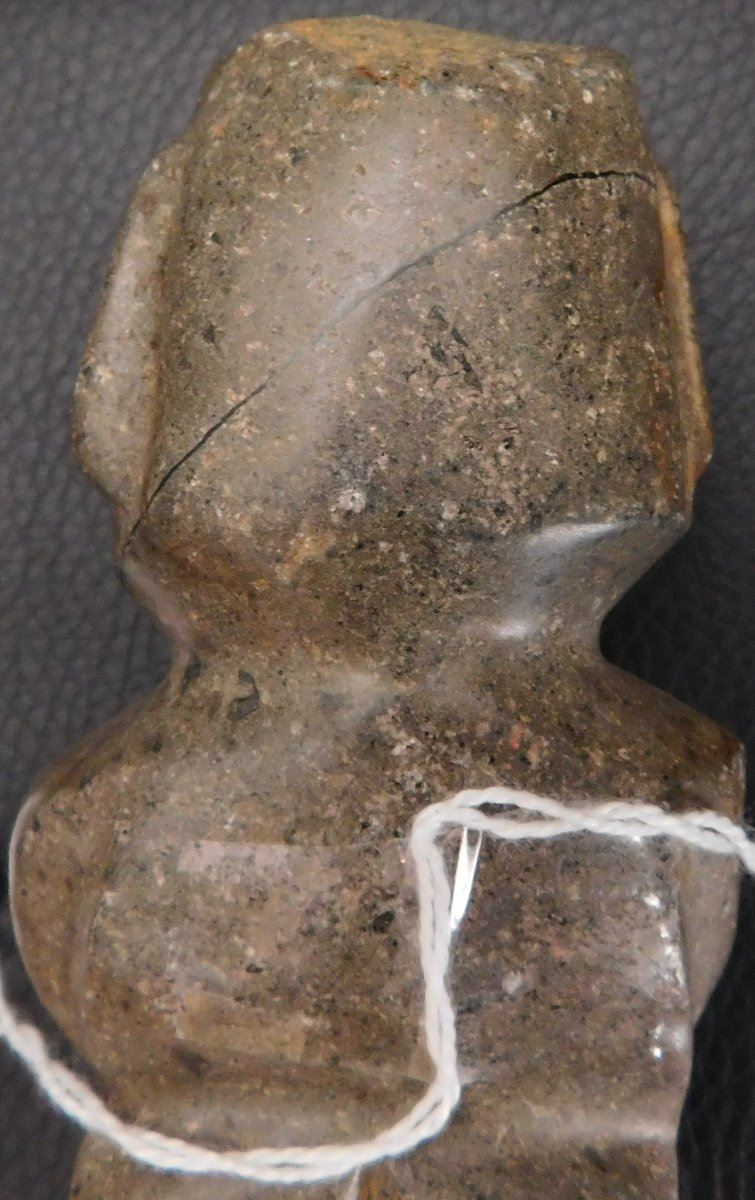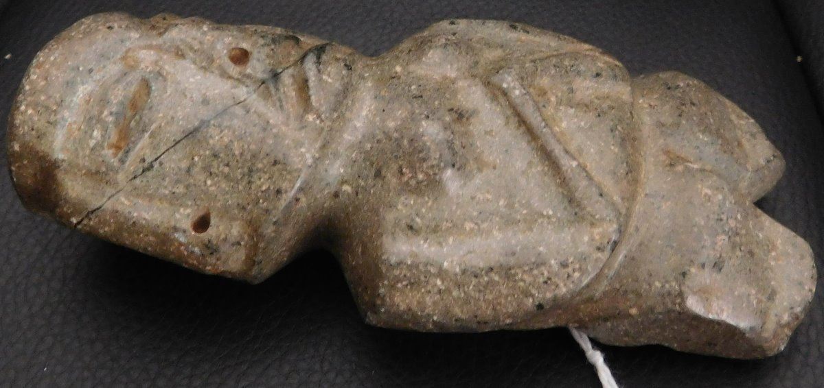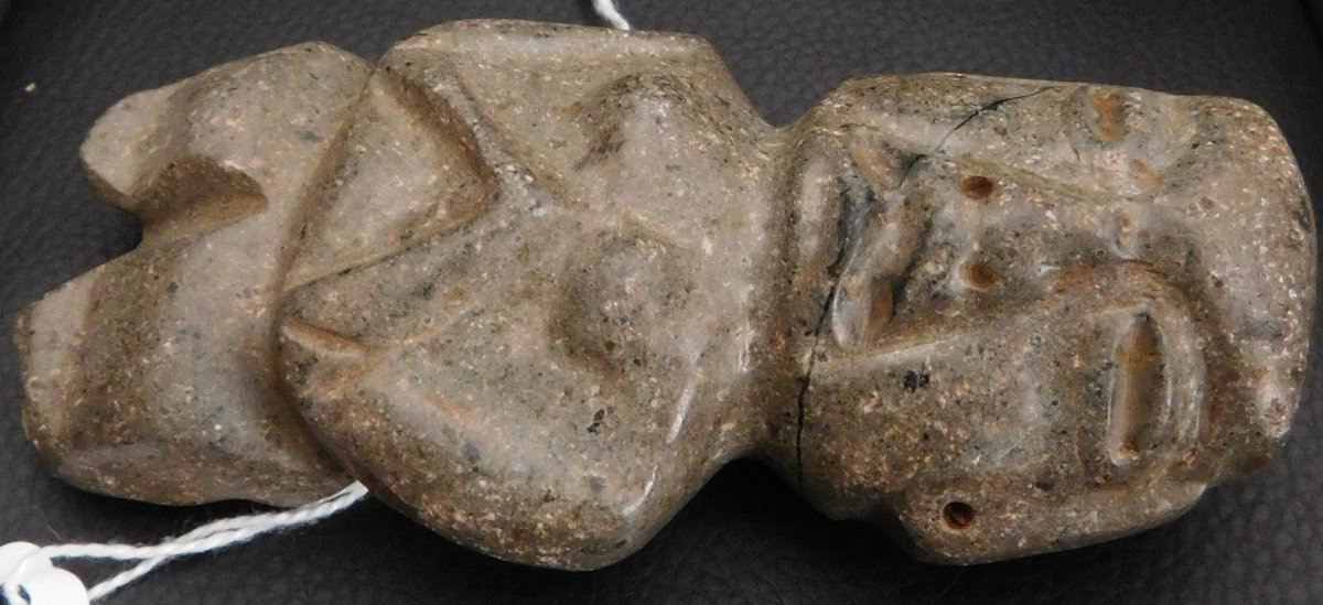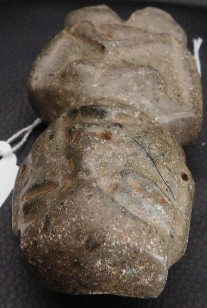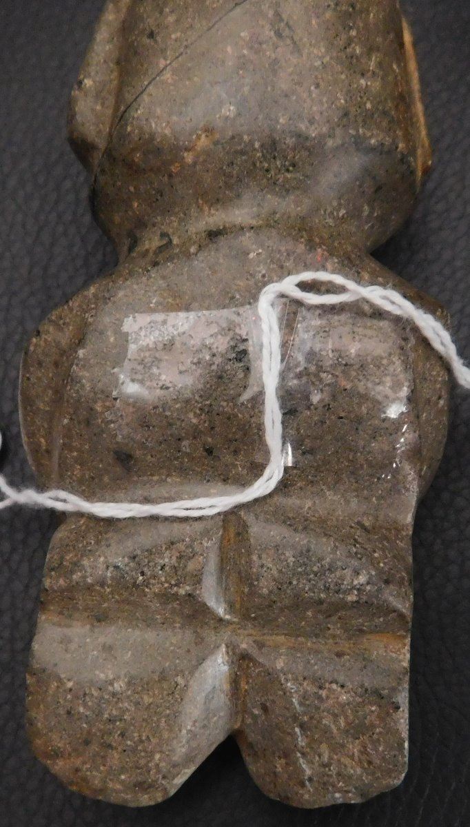 Pre-Columbian Chantal Figure w/Helm COA, circa 2000 years old. Made of basalt, the item is 4.75" x 2" x 1.5". Guerrero, MX. May have been used as an axe. Ships w/Helm Certificate of Authenticity. From an old, 1960s California collection. Condition: good, some wear and polish, see images. Shipping: $22.50 w/insurance and signature, due to value.