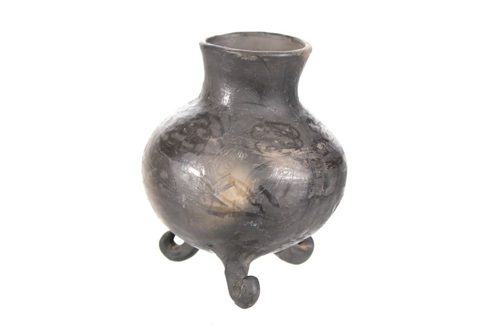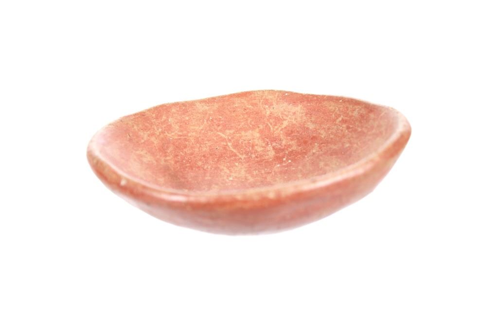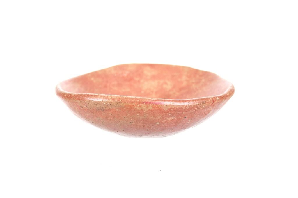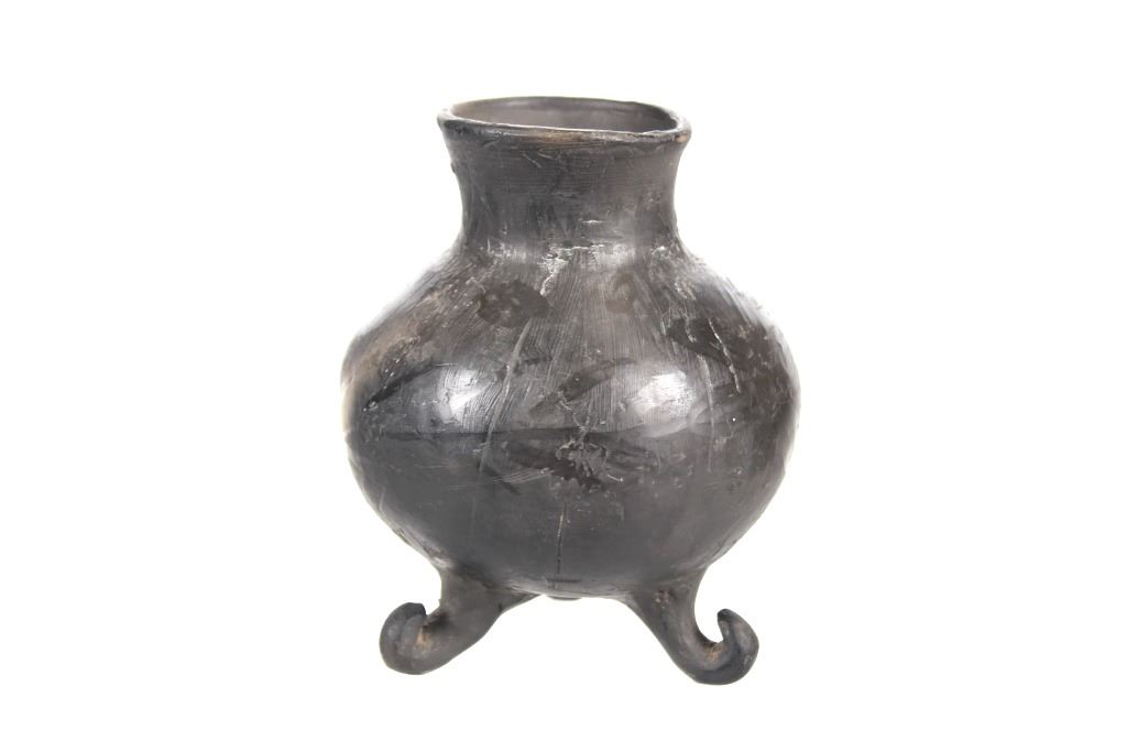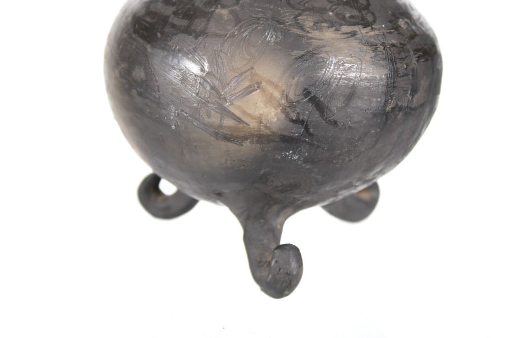 Included in this lot are Two (2) Pre-Columbian Chimu (Chimor) Culture Pottery Bowls, circa 900-1470 AD. The largest bowl is Chimu black-ware, best known and most common in Peruvian pre-Columbian tradition. The black color was achieved by firing the ceramic under conditions of limiting oxygen, thereby generating soot that bound to the vessel surface. The pottery was burnished after firing to produce the shiny black surface. The smaller bowl is red-ware. The Chimú people are best known for their distinctive monochromatic pottery. Decorative designs have faded inside smaller bowl, floral and geometric designs are still visible on larger 3-footed black-ware. Minimal scuffing / chipping observed on either piece. Black-ware measures 5.5"H x 4.25" diameter, red-ware is 5" diameter x 1.5"H; total weight is 1lb, 2oz.