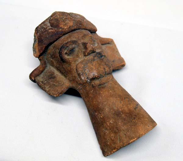 Pre-Columbian Clay Statue of Head. Top of headdress is broken off and back of neck has been chipped, as shown in photograph. Measures 7''Hx4.5''W. Buyers Pay Actual Shipping and Handling Charges(see terms and conditions for more information).