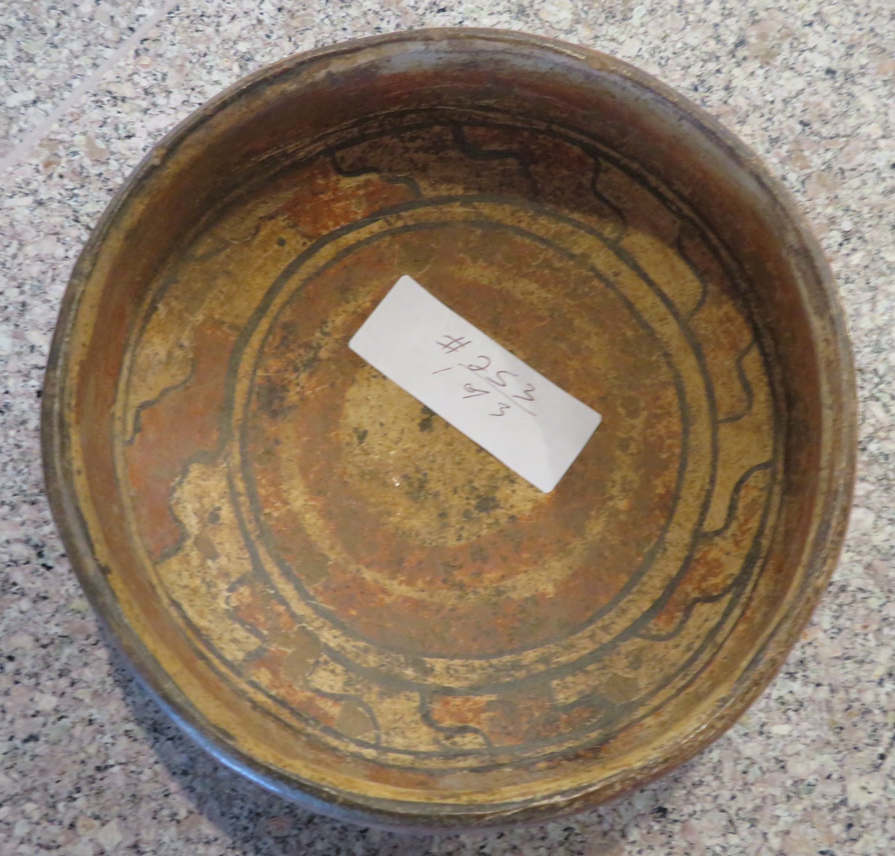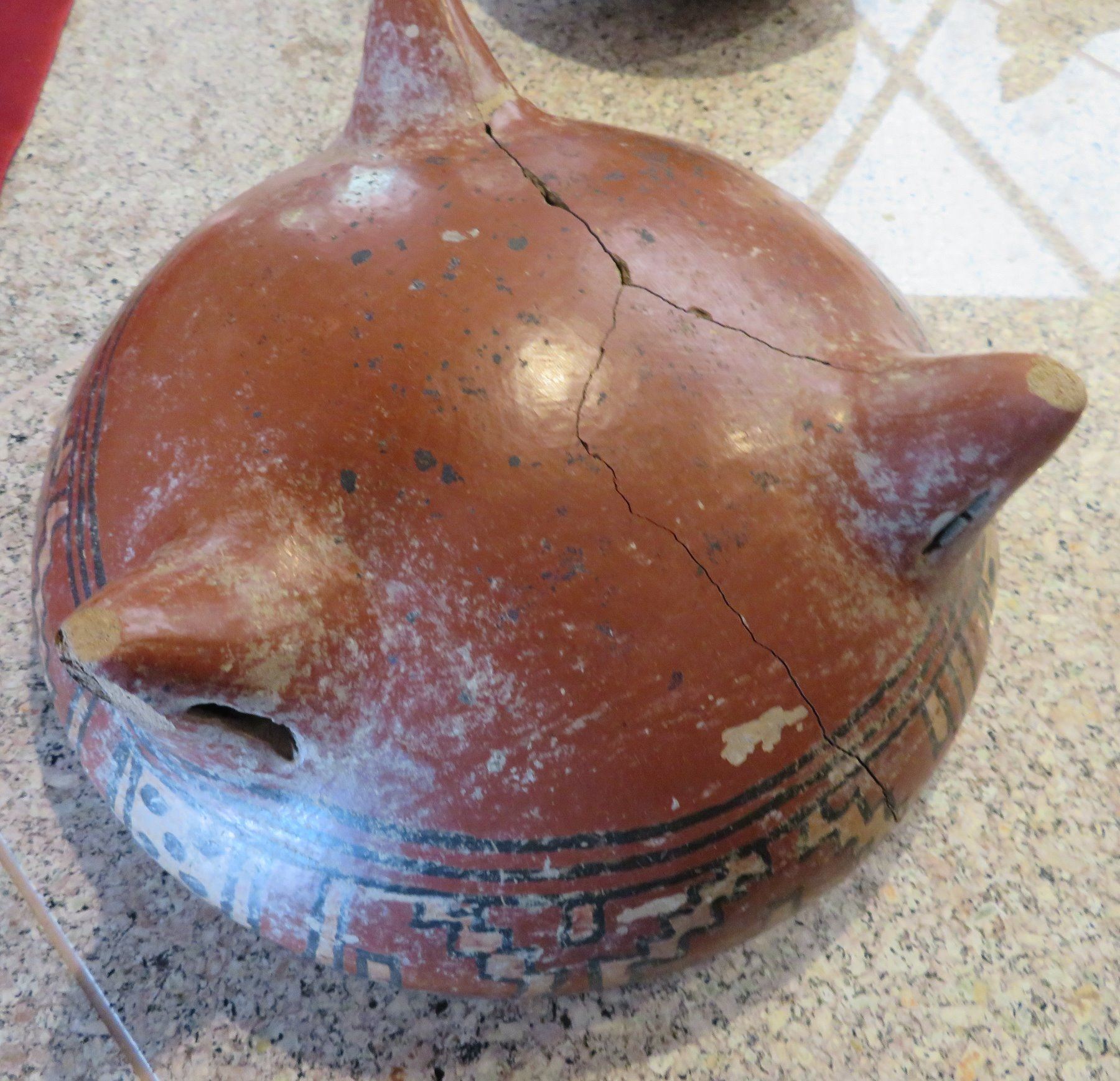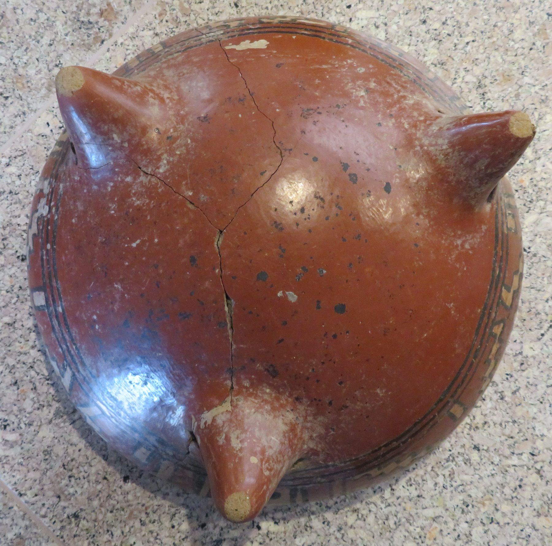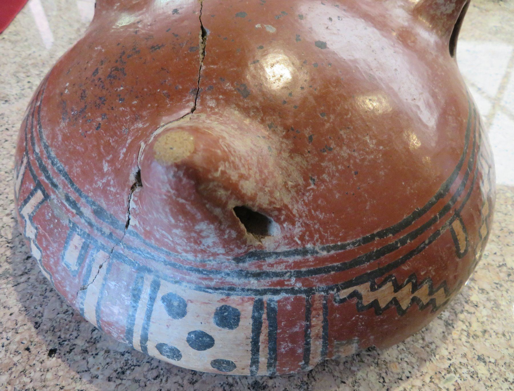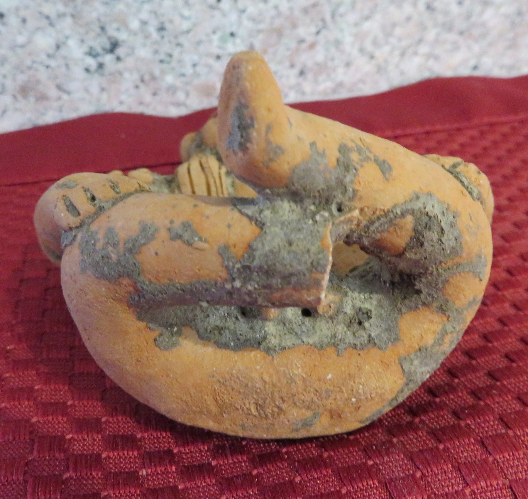 Pre-Columbian Collection, pre-Columbian items. Made of clay and paint, the largest measures 9 1/2". Colima, Chupicuaro larger bowl. Condition: Large chip and crack on large bowl, chip on nose of man, see images. Shipping: $60.00 w/insurance and signature, double-boxed.
