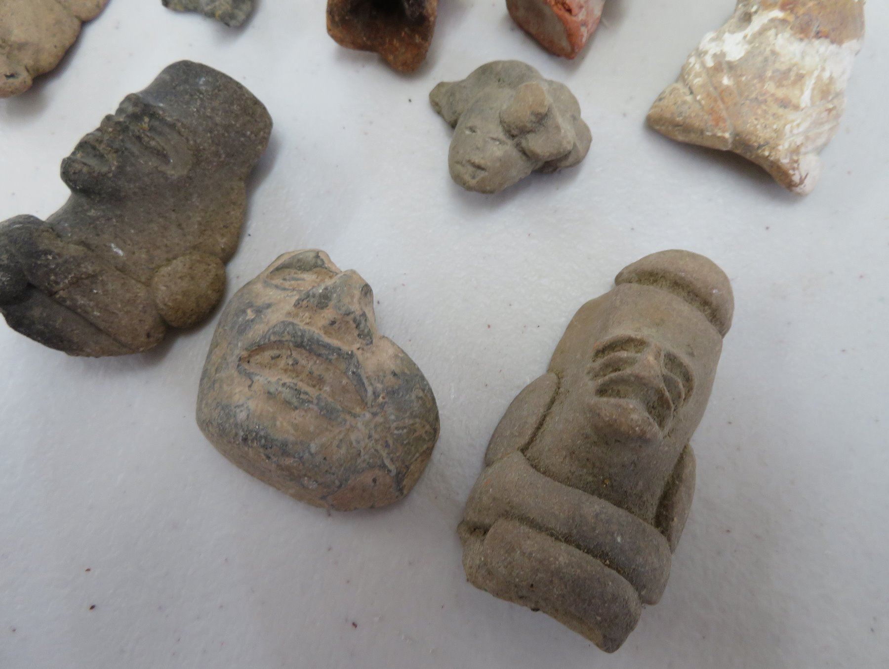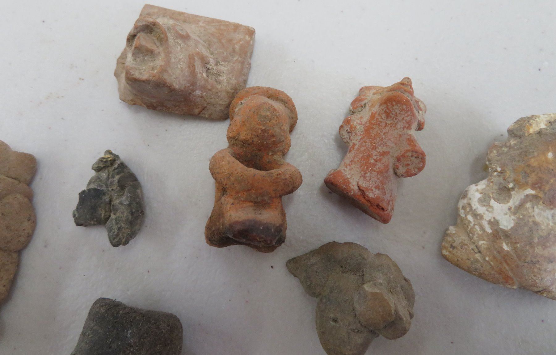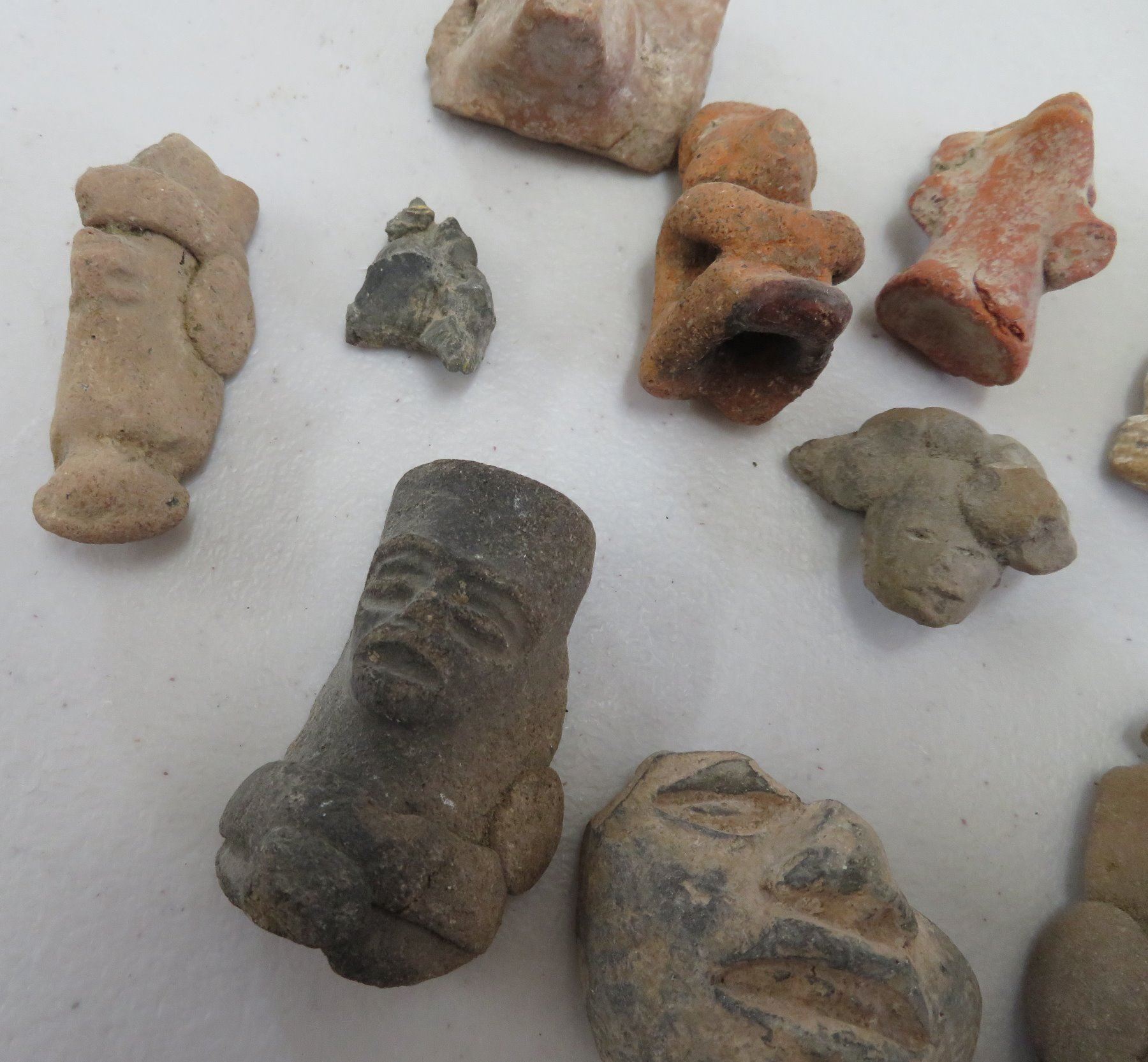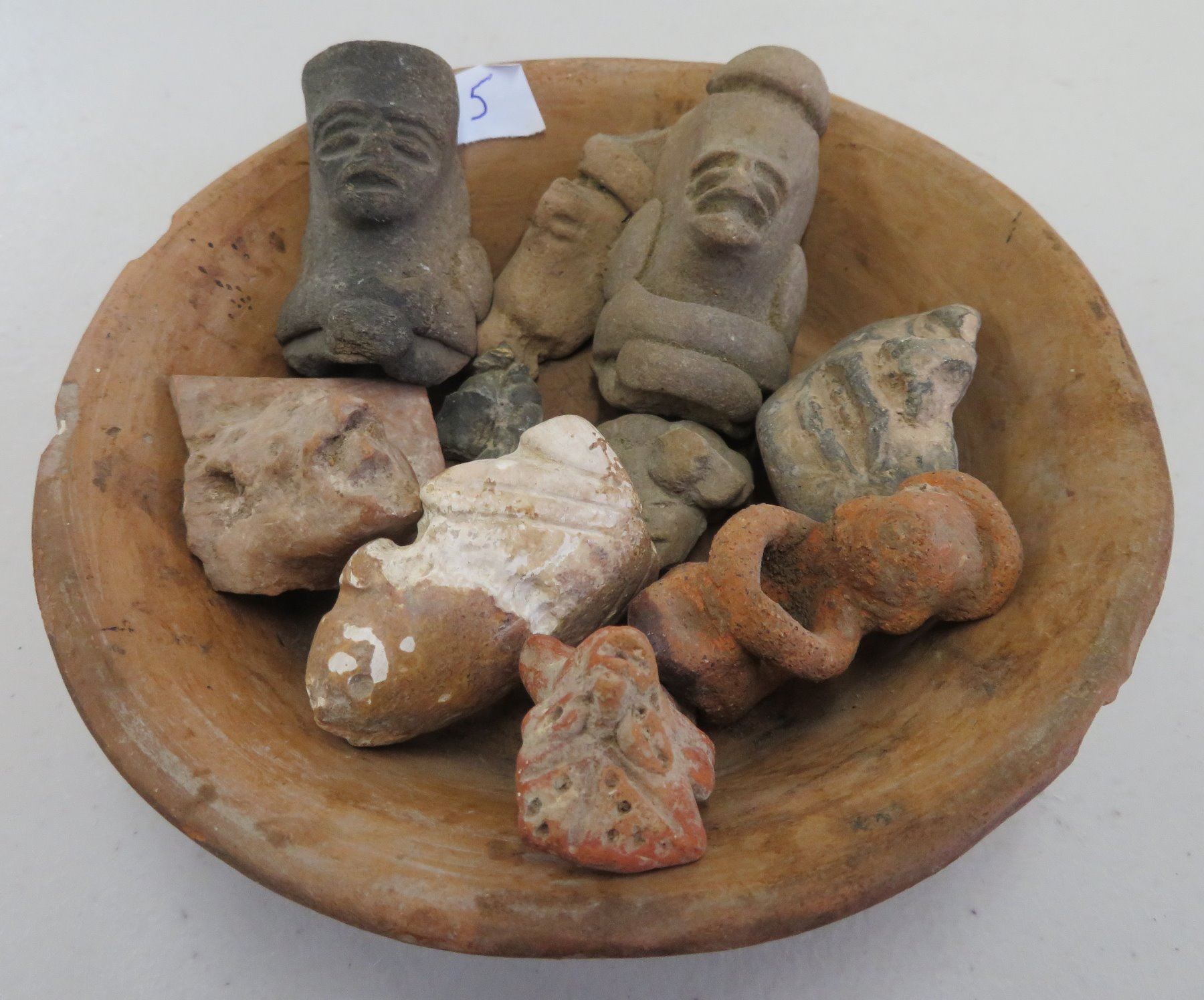 Pre-Columbian Collection, pre-Columbian items. Made of clay and paint, the bowl measures 6". Western Mexico. Bowl and ten other relics. Condition: Most have damage, see images. Shipping: $22.50 w/insurance and signature.