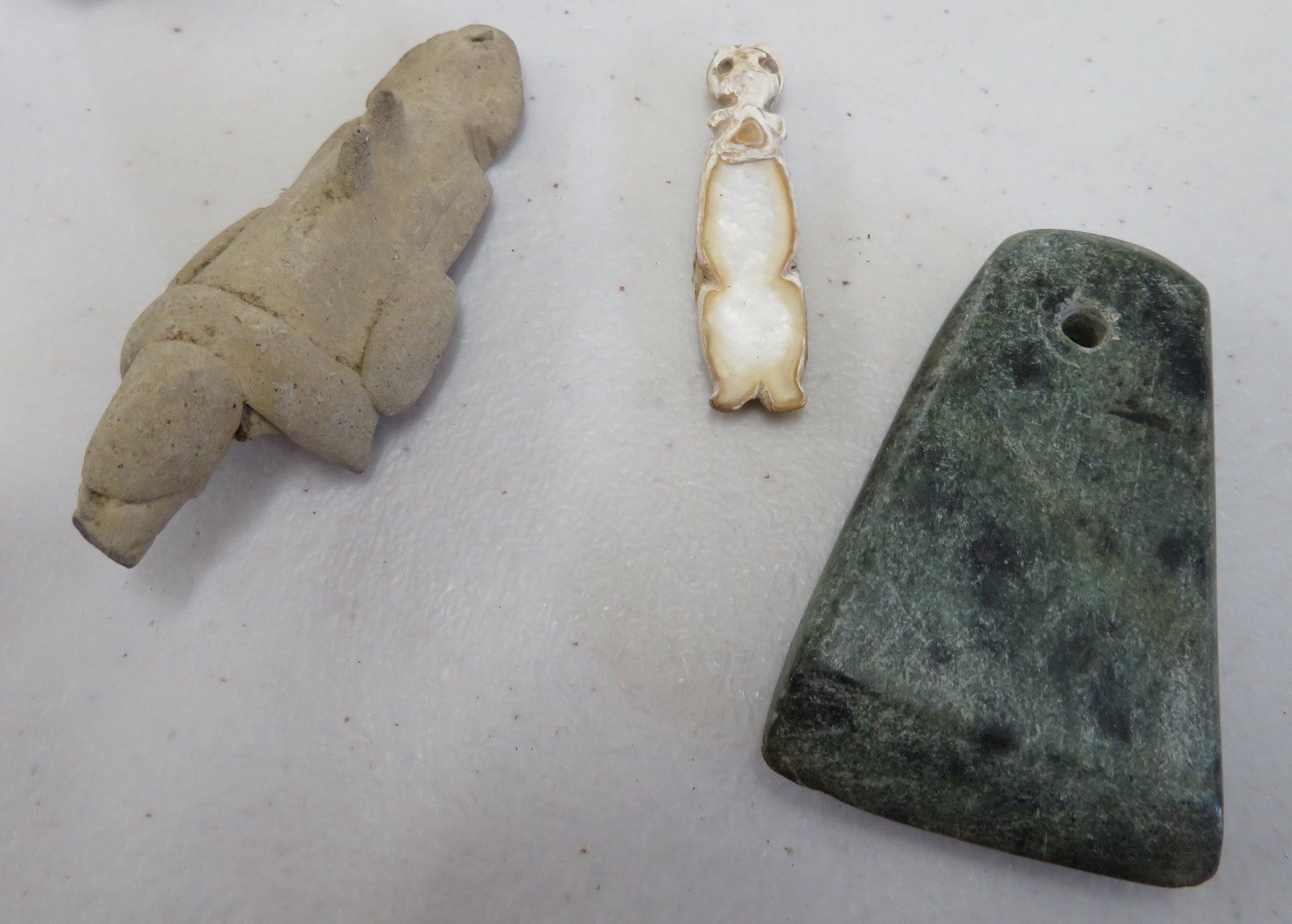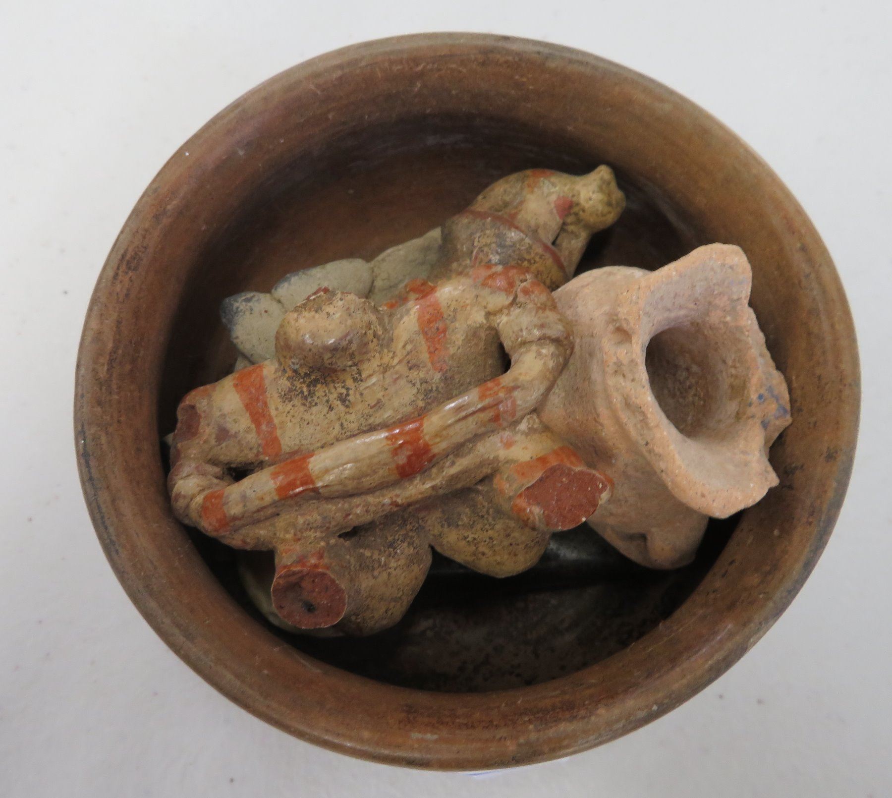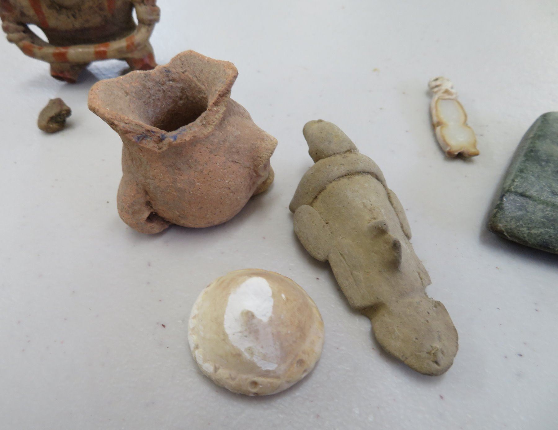 Pre-Columbian Collection, pre-Columbian items. Made of clay, paint, basalt and shell, the bowl measures 4". Jalisco, Mexico. Condition: Most have damage, see images. Shipping: $23.50 w/insurance and signature.