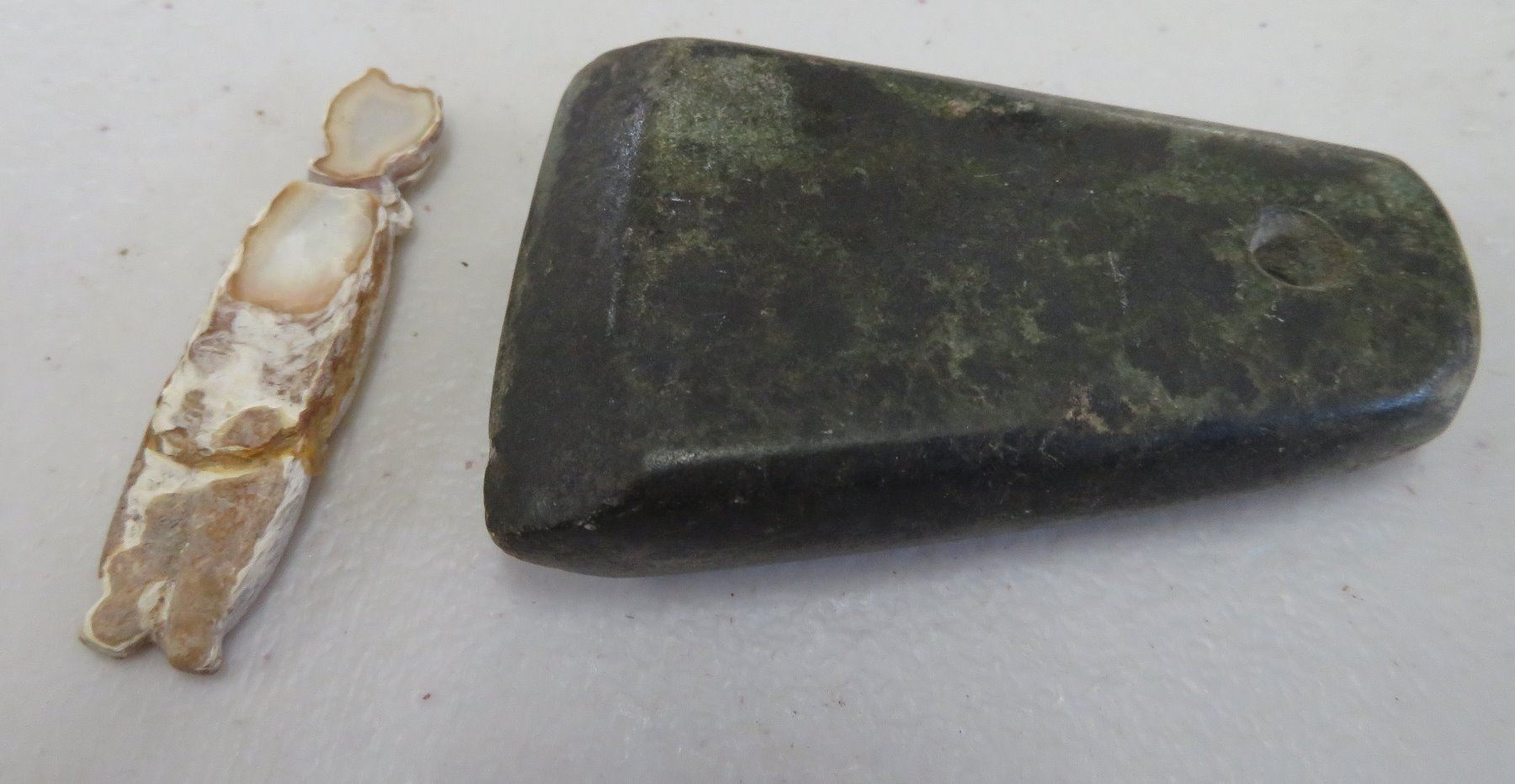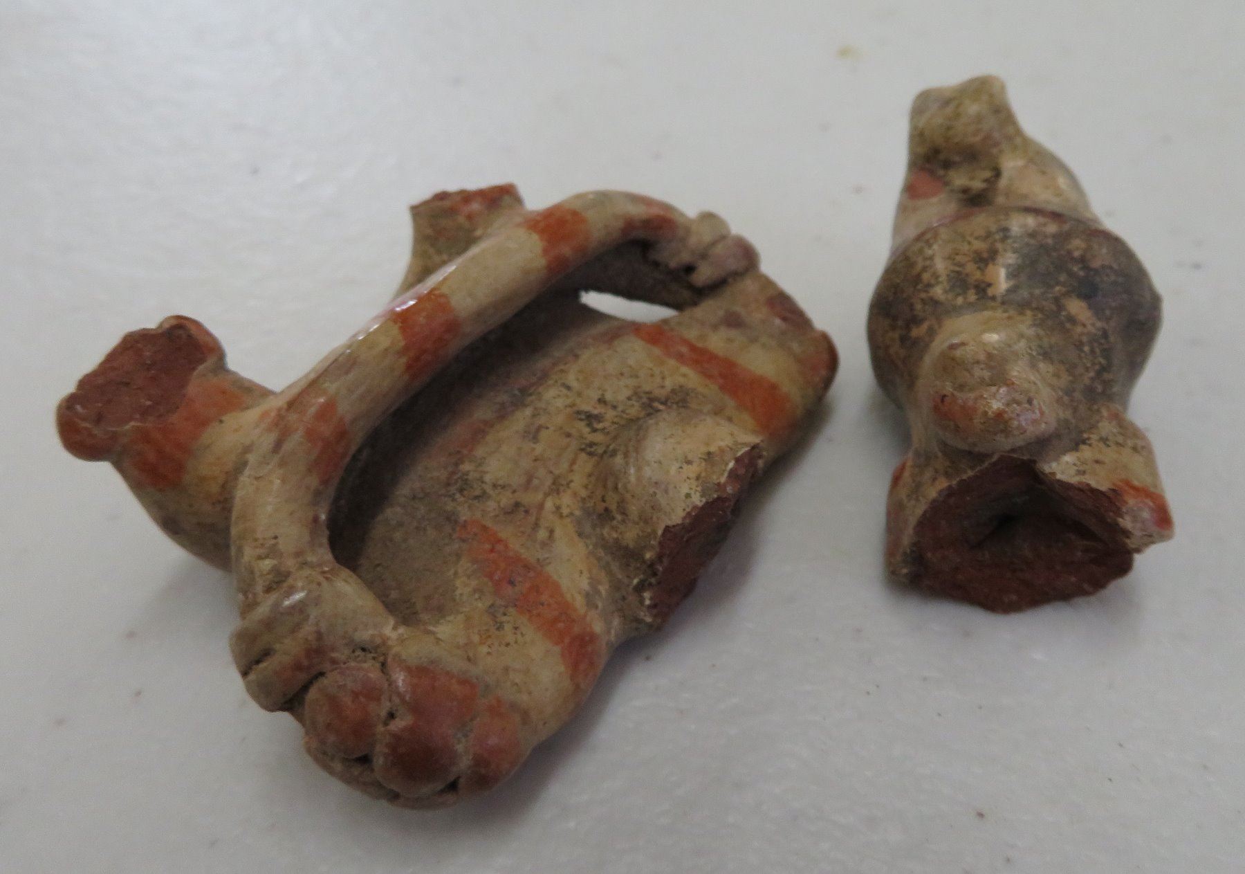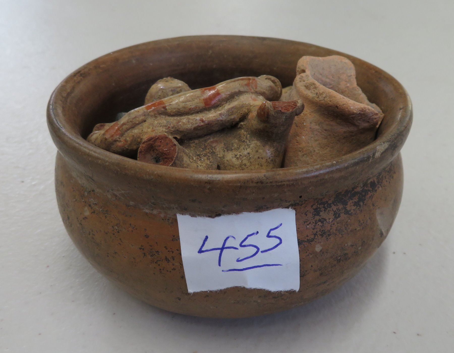 Pre-Columbian Collection, pre-Columbian items. Made of clay, paint, basalt and shell, the bowl measures 4". Jalisco, Mexico. Condition: Most have damage, see images. Shipping: $23.50 w/insurance and signature.