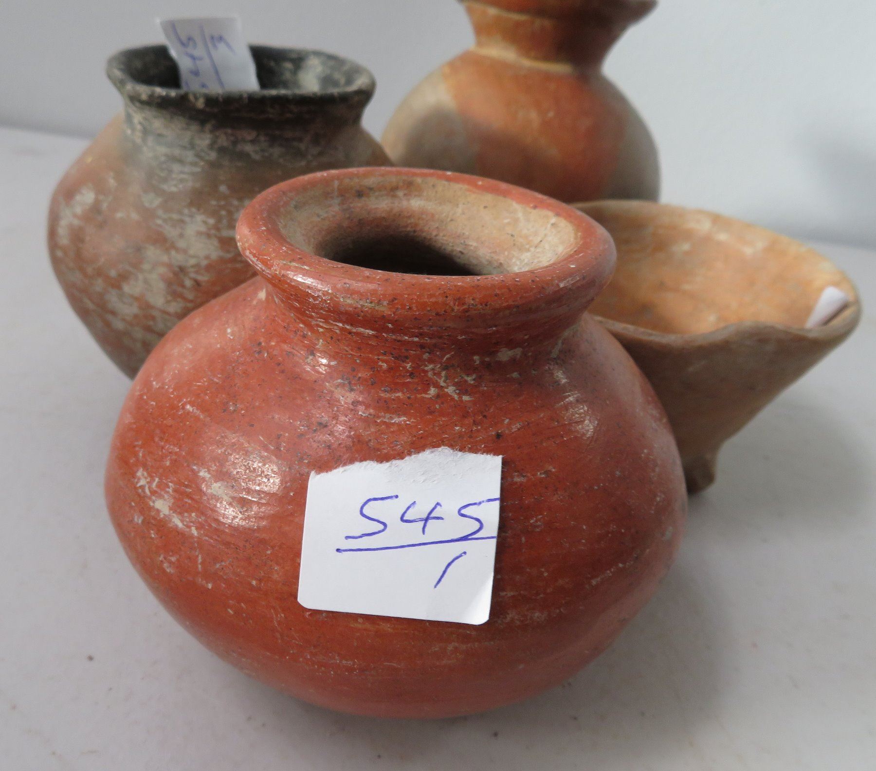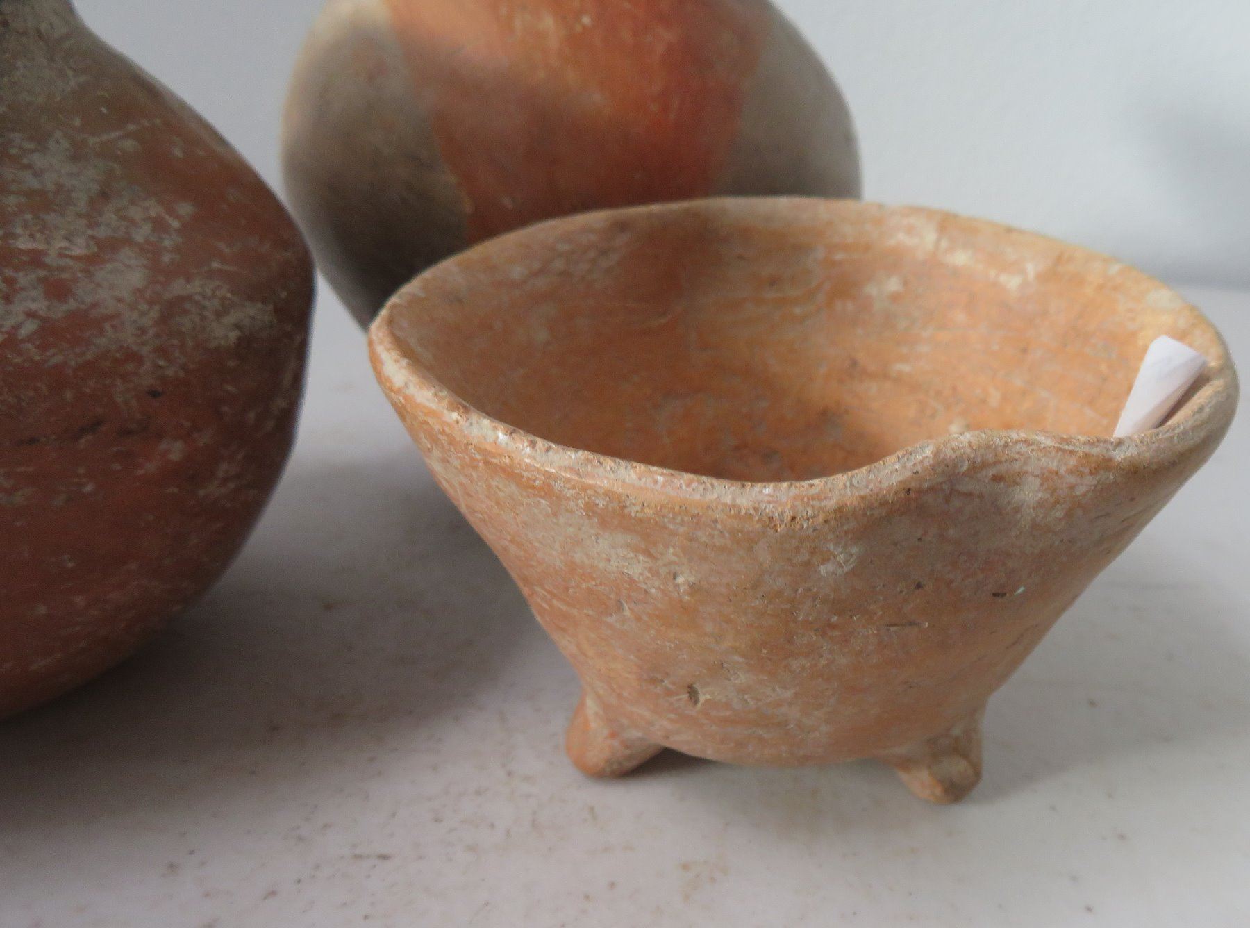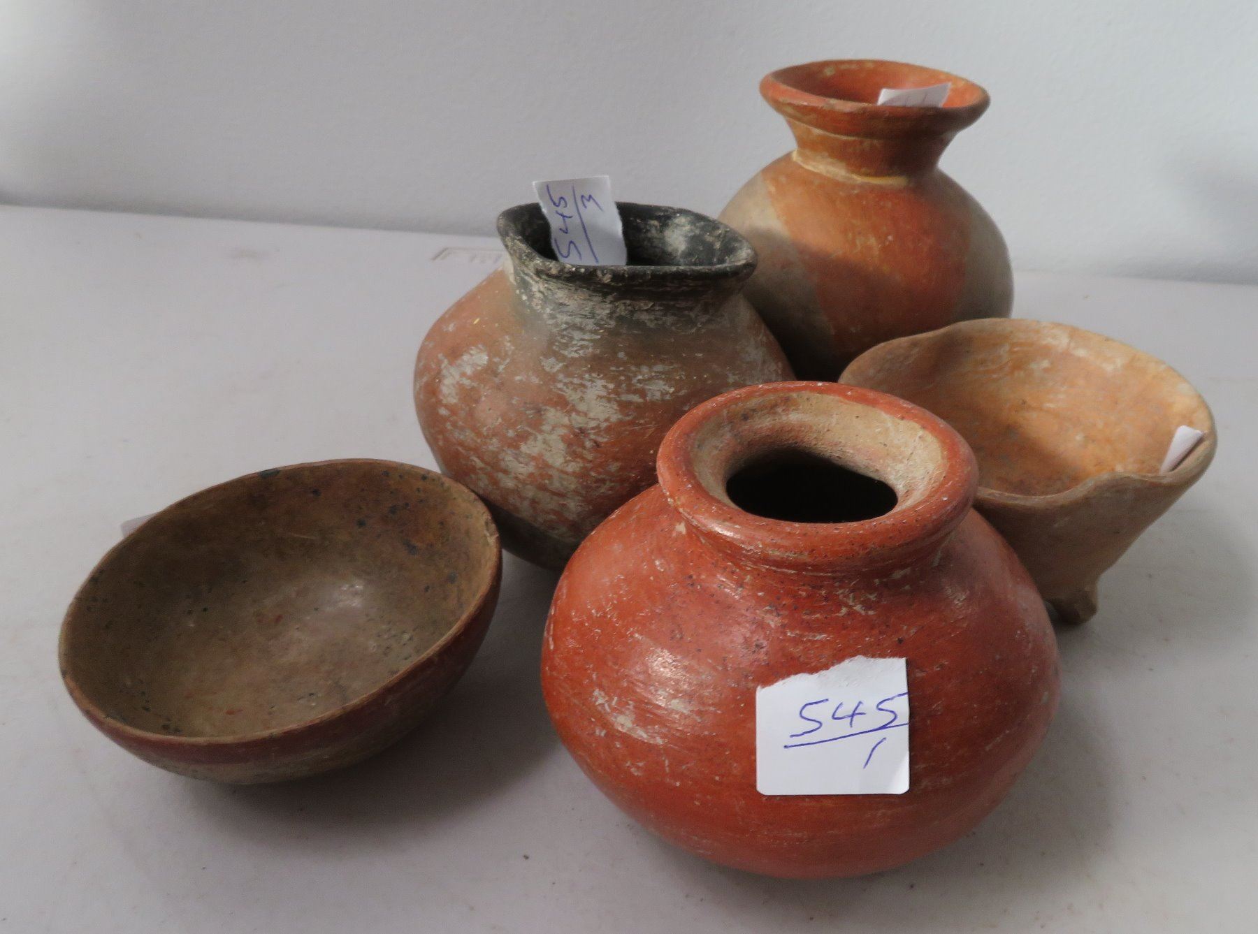 Pre-Columbian Container Collection, pre-Columbian items. Made of clay and paint, the largest measures 4 1/2". Colima, Mexico. 5 bowls and ollas. Condition: Good, as found, see images. Shipping: $40.00 USA estimate only, w/insurance and signature.