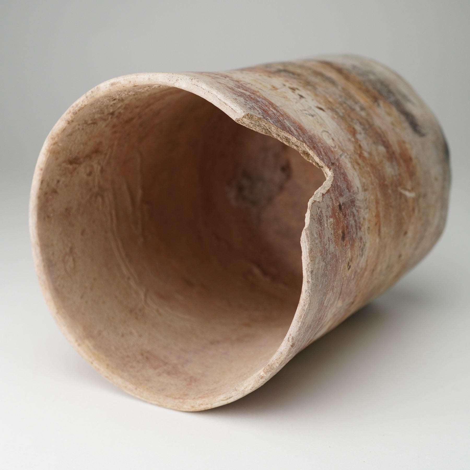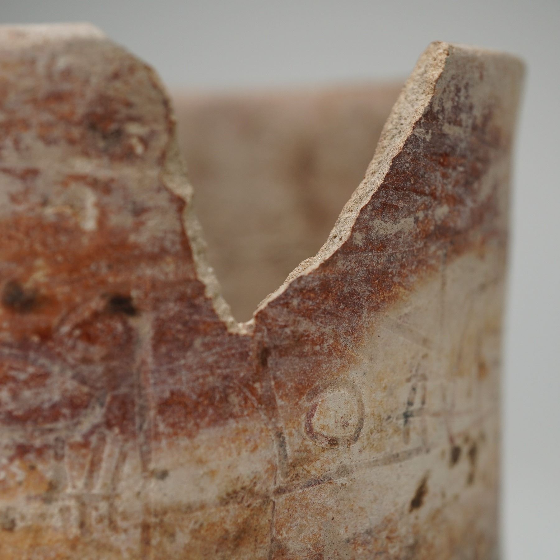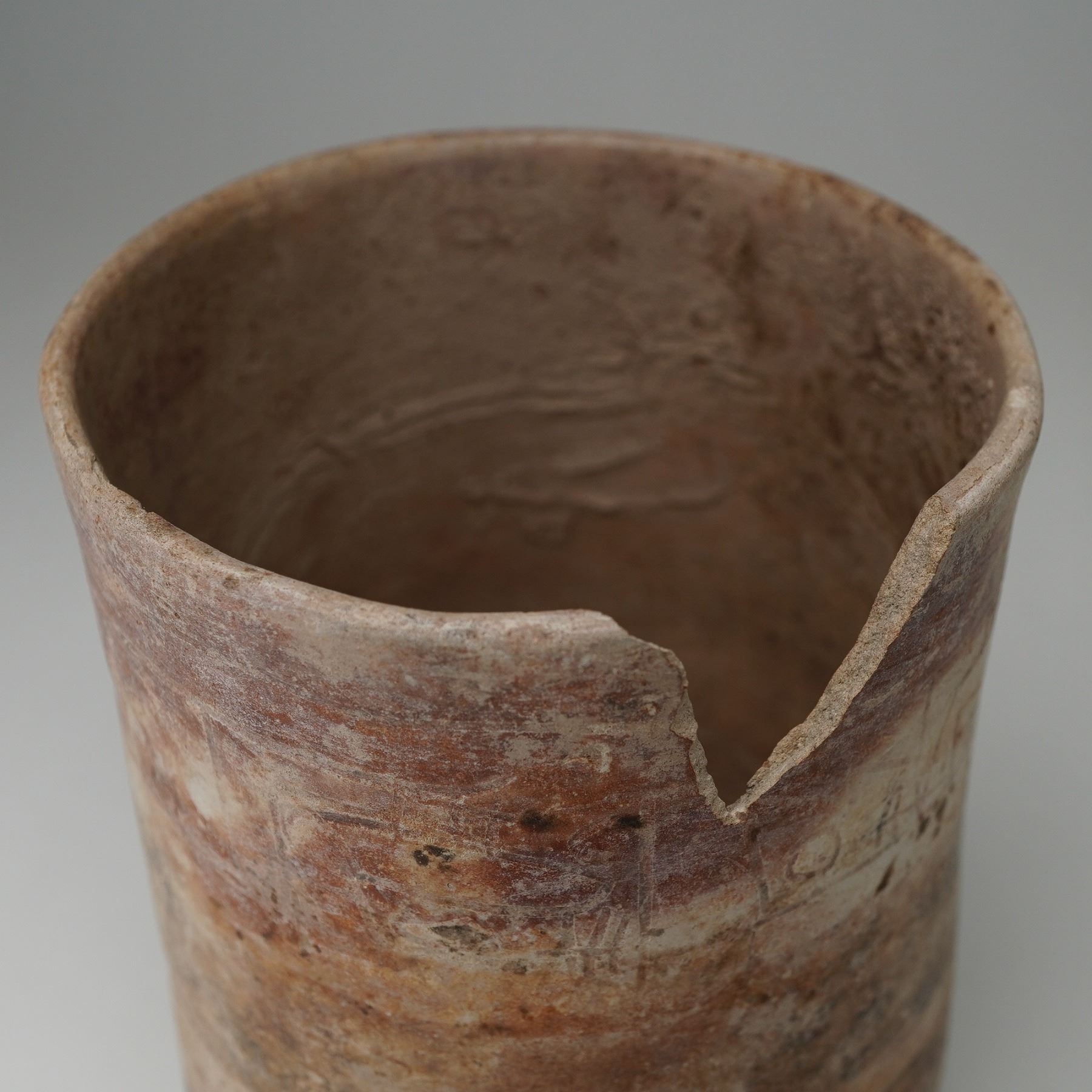 Pre-Columbian Cylindrical Earthenware Vessel with Carvings