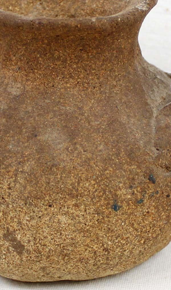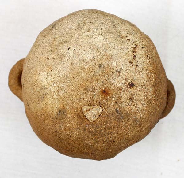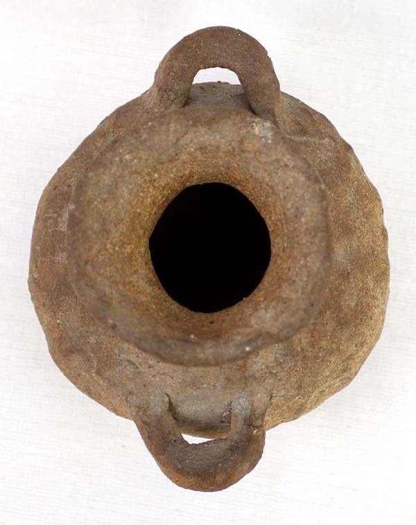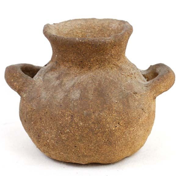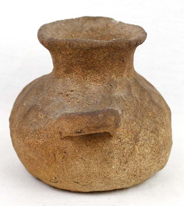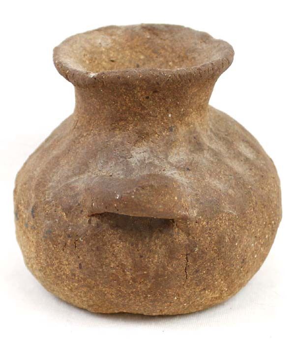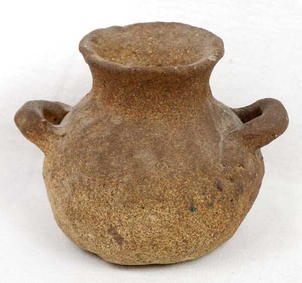 Pre-Columbian Double Handle Bowl, measures 3.5''x3.5''. Nice all there, heavy clay pre-columbian bowl with flared rim.