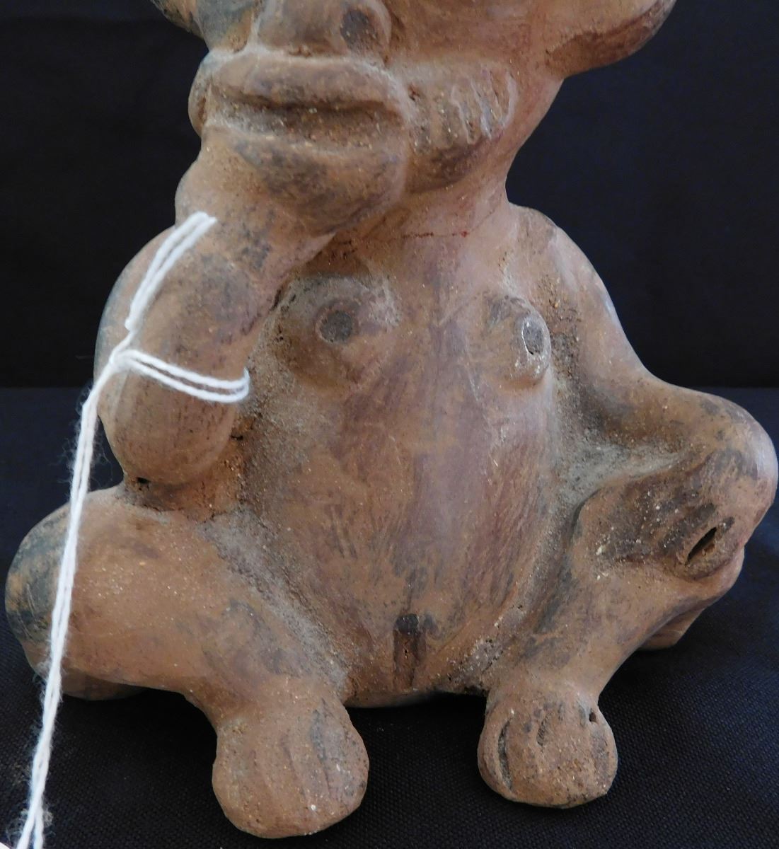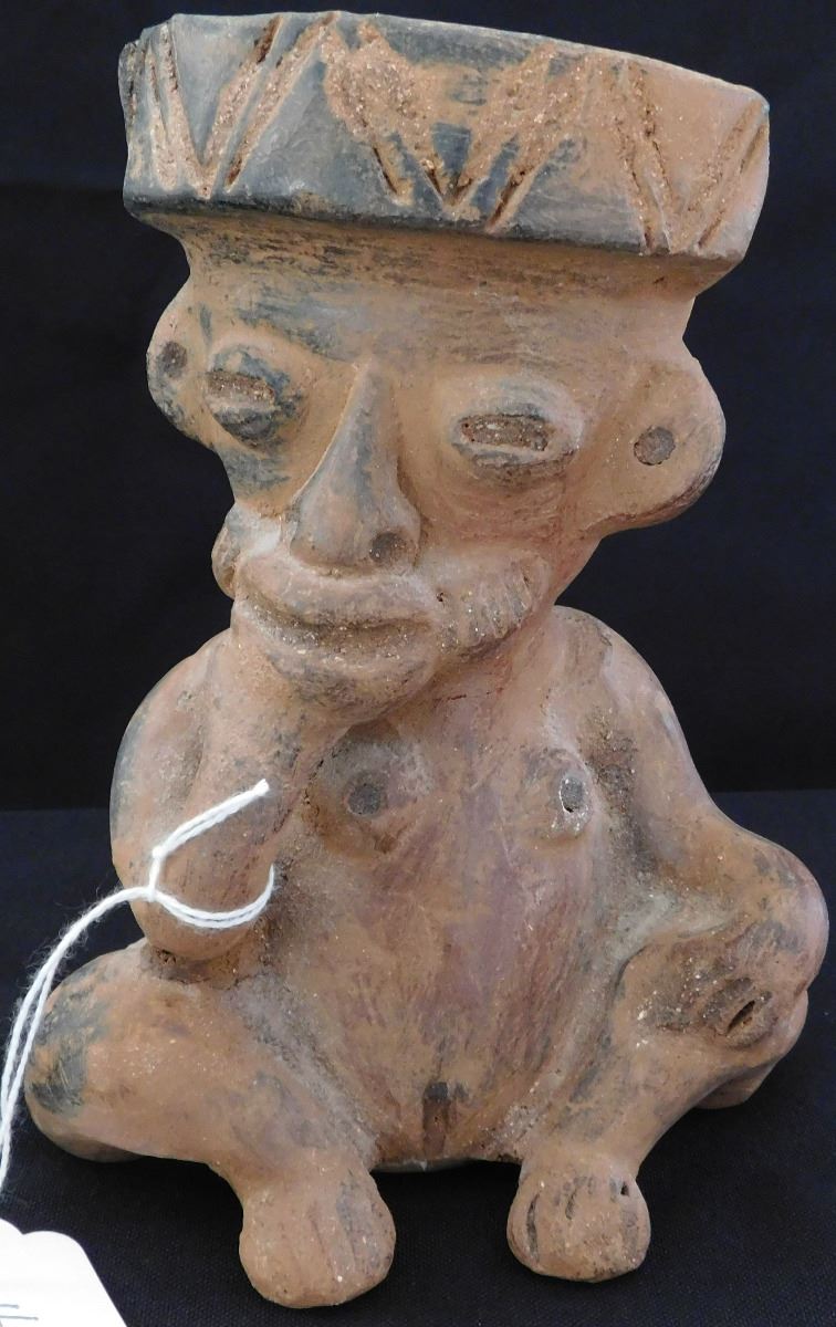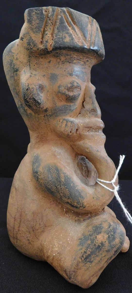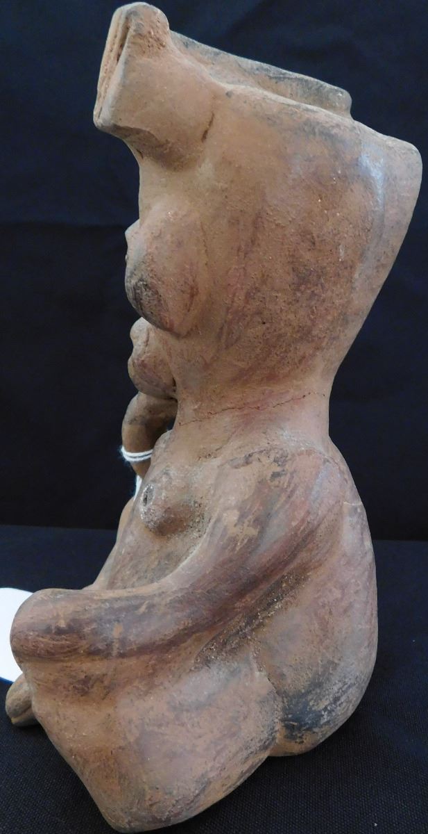 Pre-Columbian Female Figure, circa 1000 AD. Made of clay with nice polish on item. Figure measures 6.5" x 5" x 4", from the Nicoya region of Costa Rica. Condition: Nice, some original soil remains from item's discovery, see images. Shipping: $28.