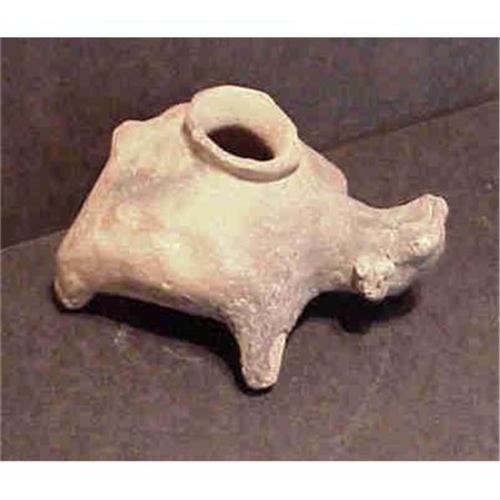 This style of pot usually depicts strong animal figures. This pot has a rather human face but also has a tail.
