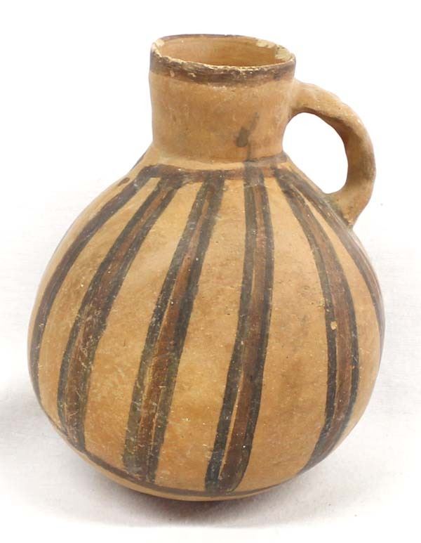 Pre Columbian Peruvian Huari/Wari Culture Pottery Jug, some chipping on rim, measures 5.5'' x 7''